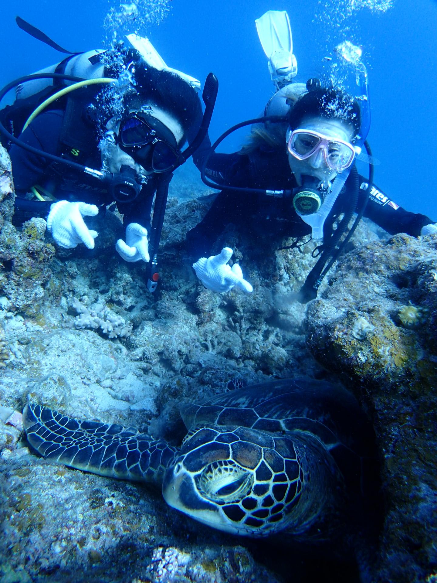 エントリーすると、船下には なななんとビッグサイズのアカウミガメが登場ー!!