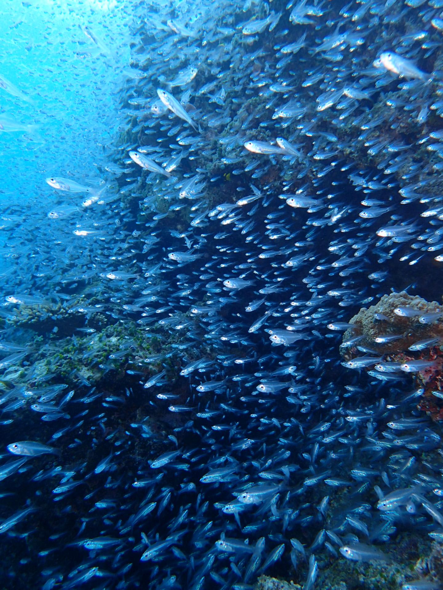 下の方はギンガメアジも群れ群れしてて、迫力満点なのでした)^o^(