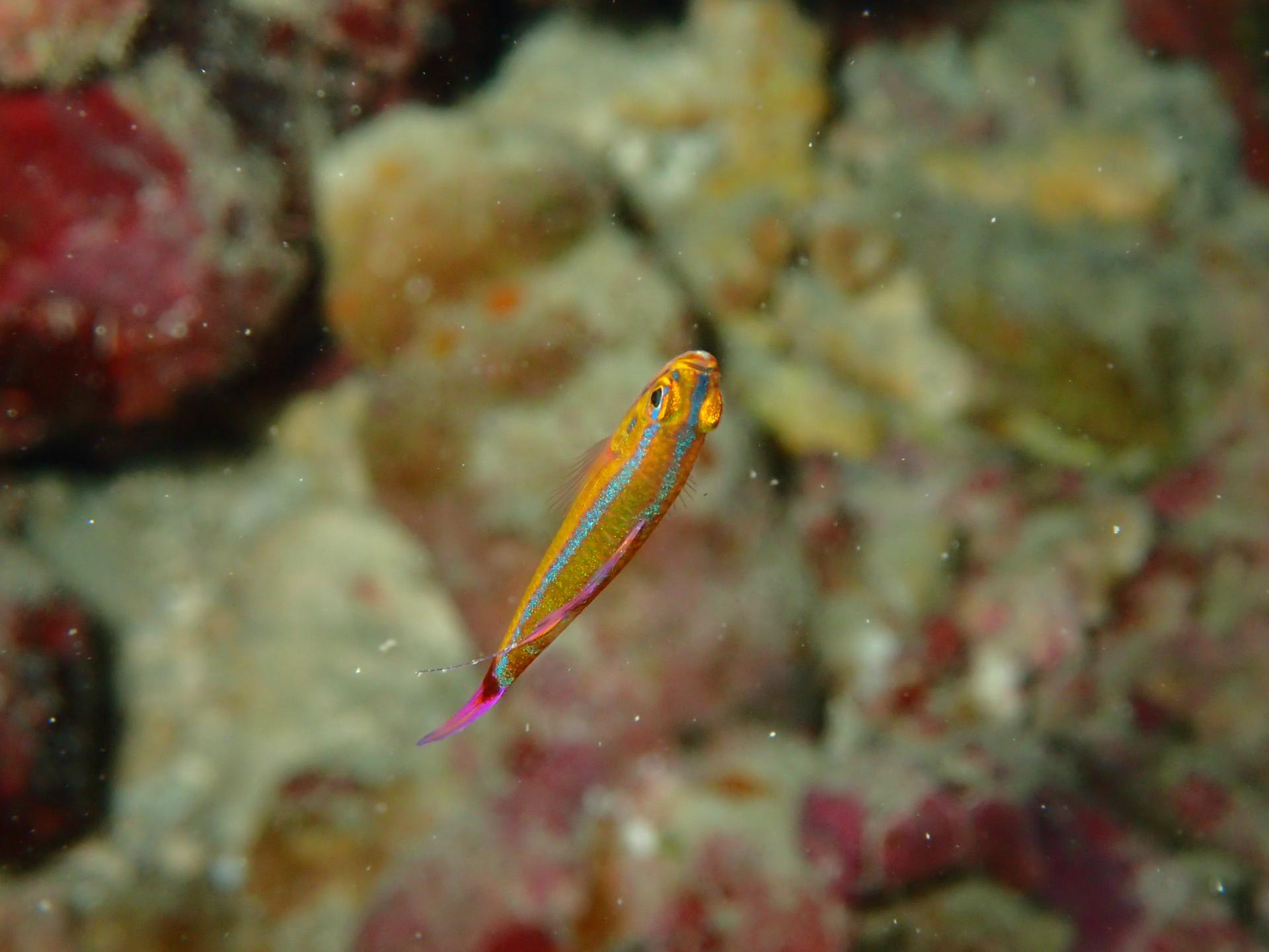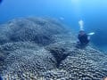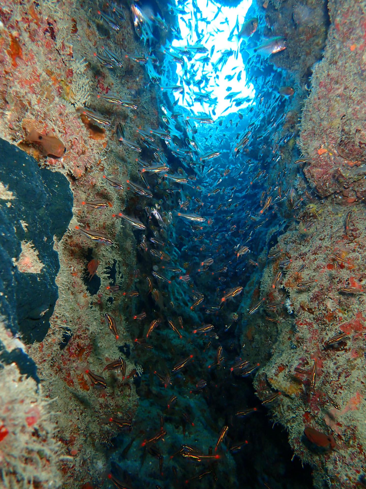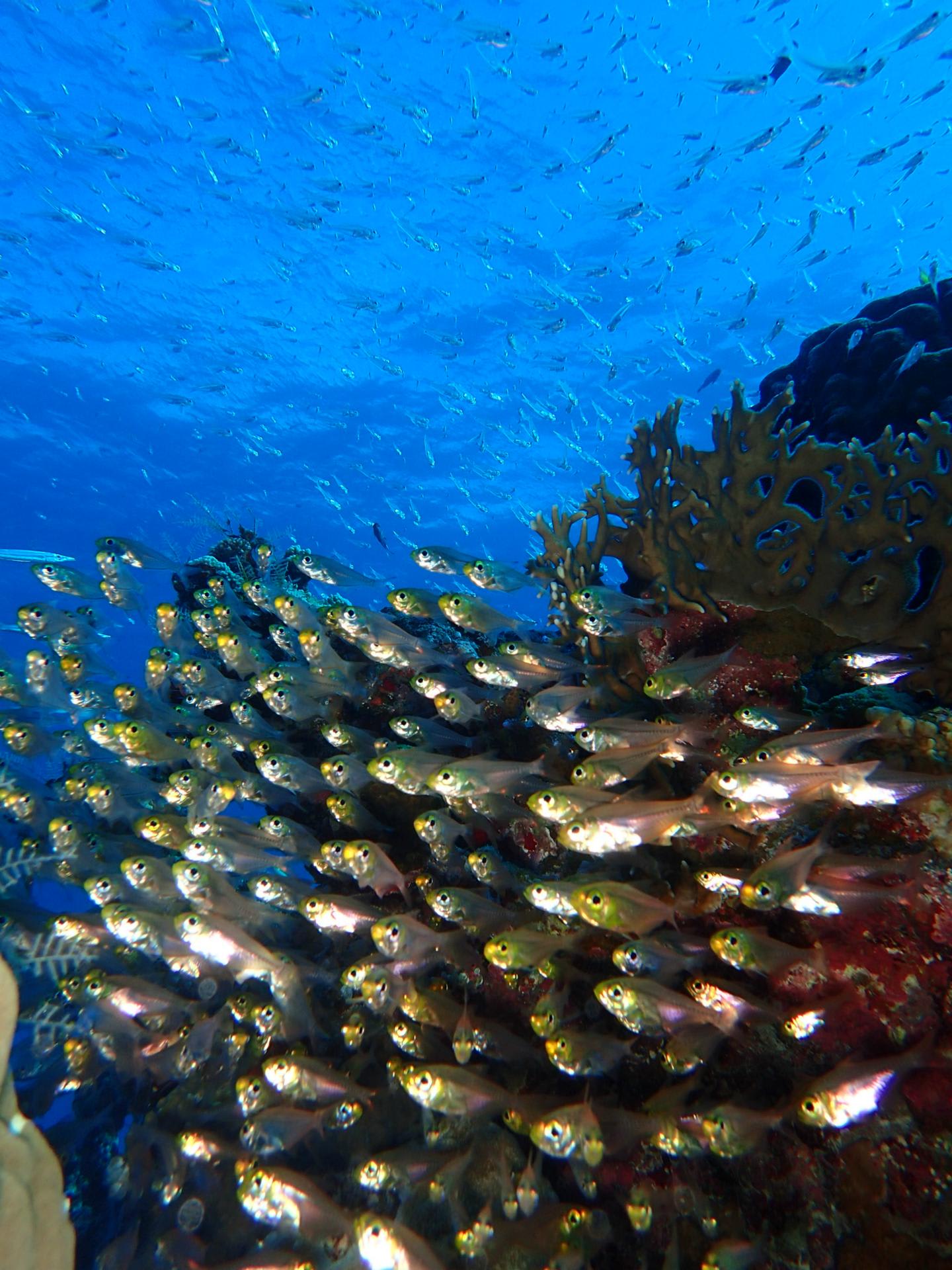 砂地ポイントでは、わっさーと群れるスカシテンジクダイや