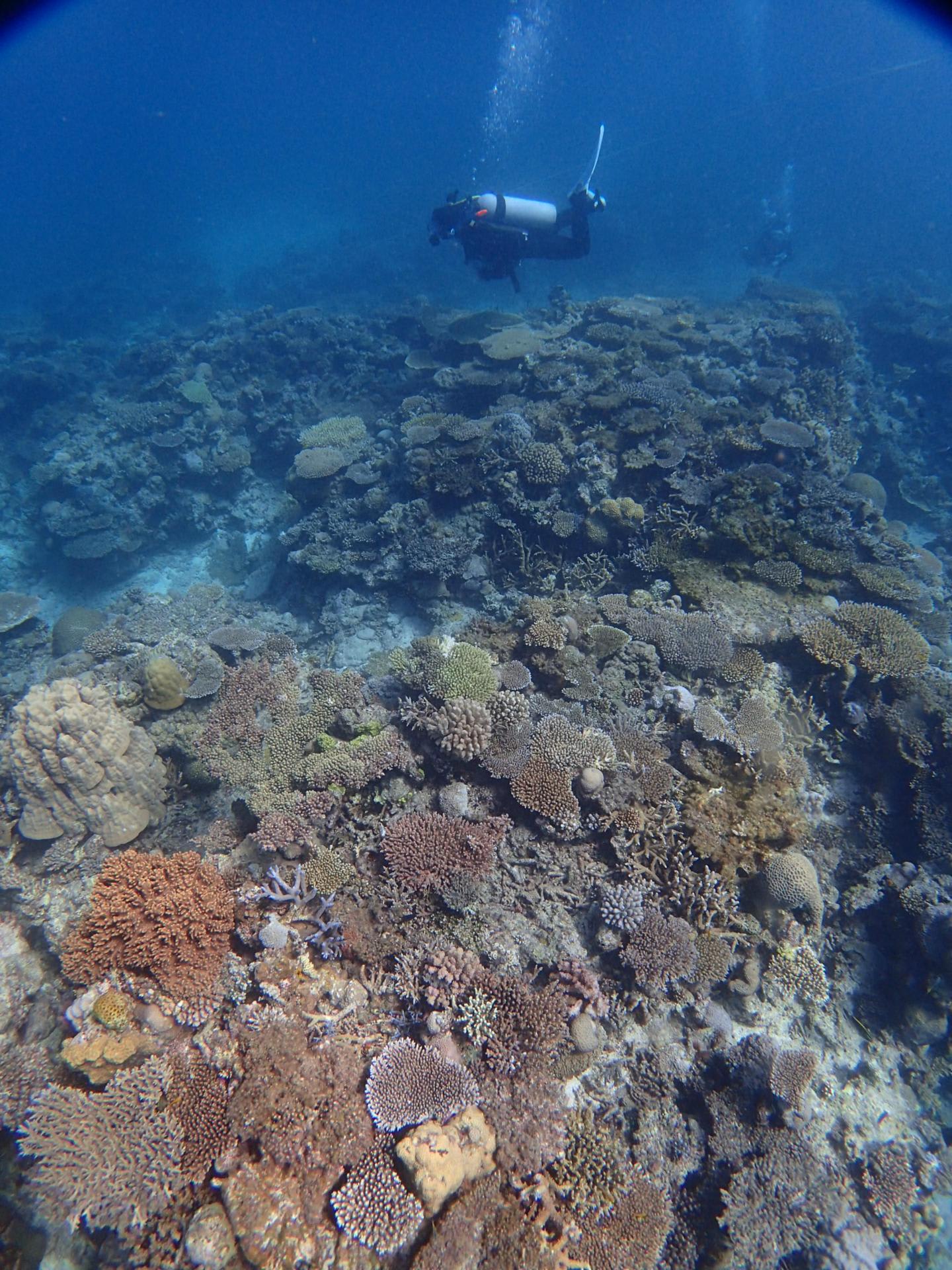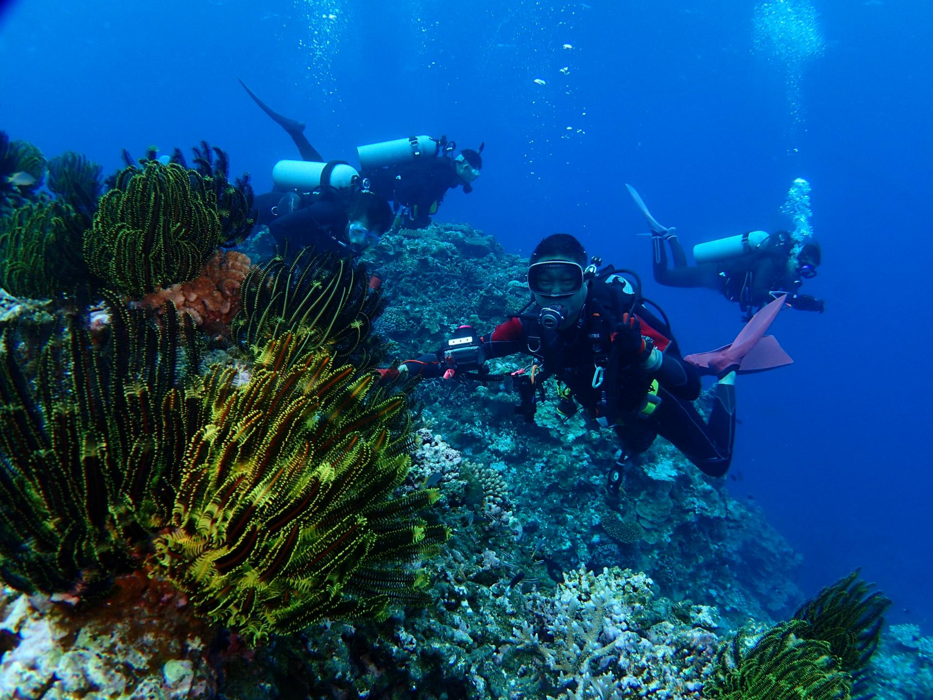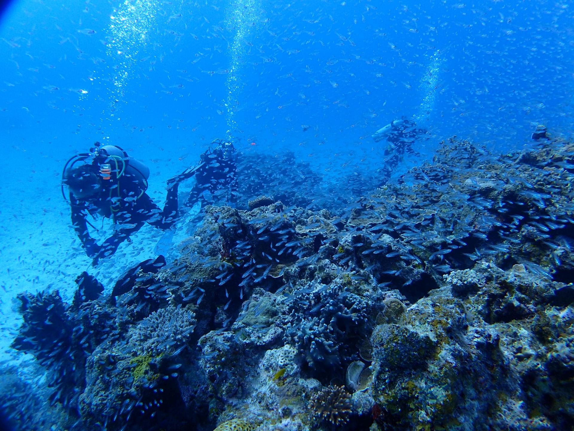 降り注ぐ太陽できらめいているであろう サンゴのポイントでエントリー♫
