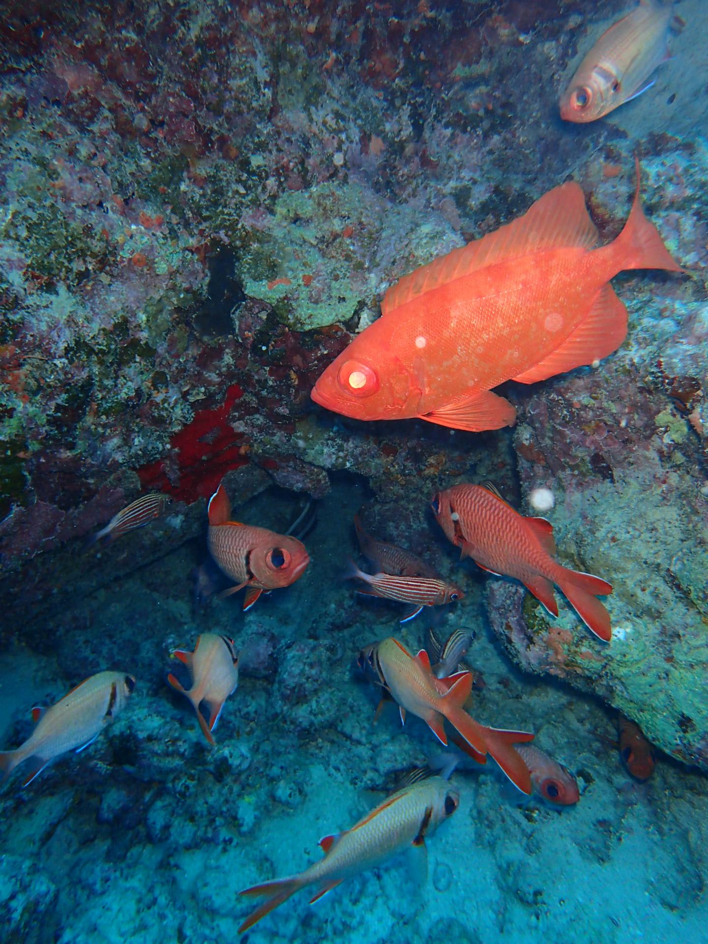 ドロップ沿いを泳ぎ アカククリやネオンテンジクダイ