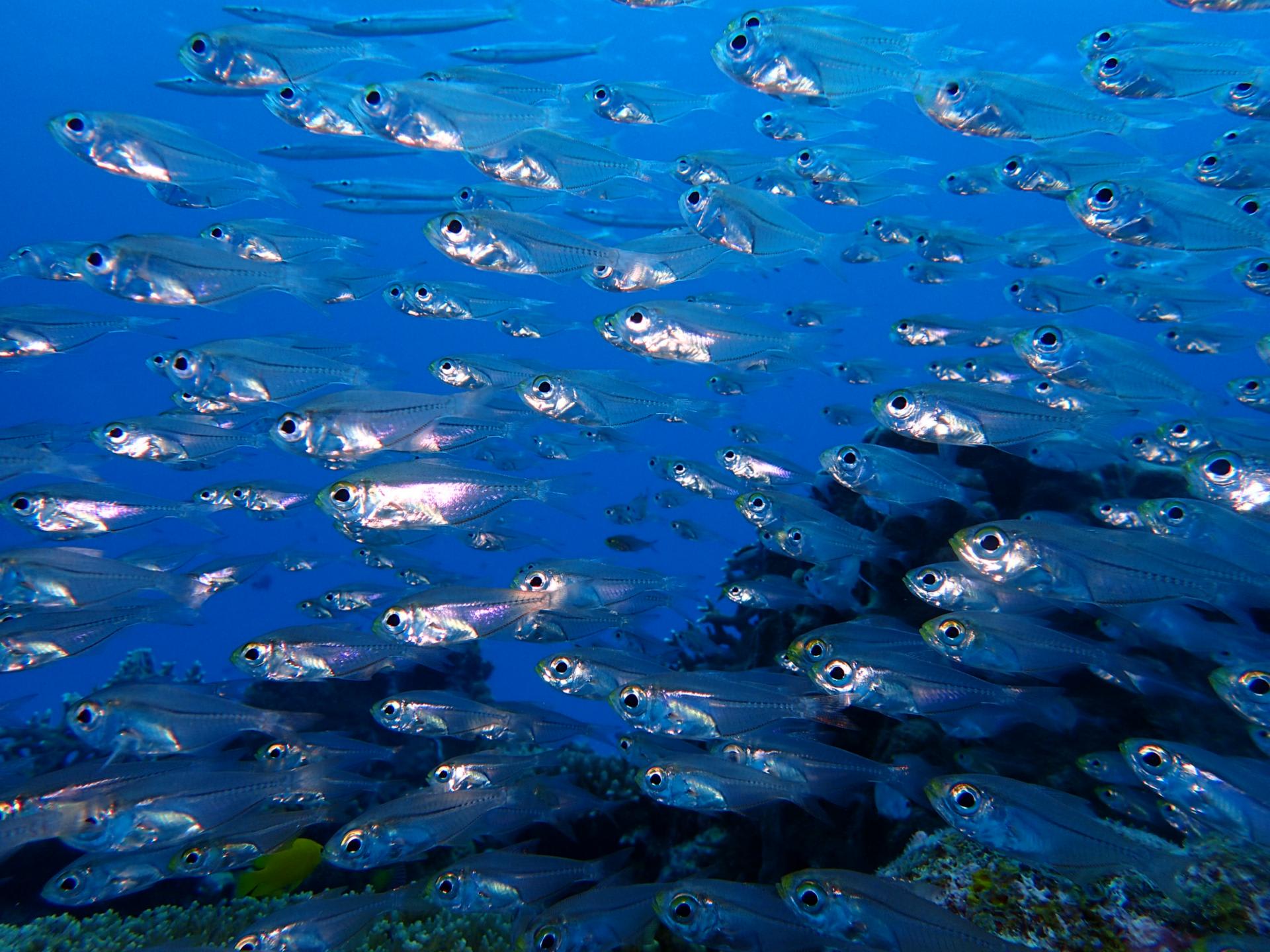 本日は、砂地からスタートです♪真っ白な砂地の大きな根には、スカシテンジクダイ