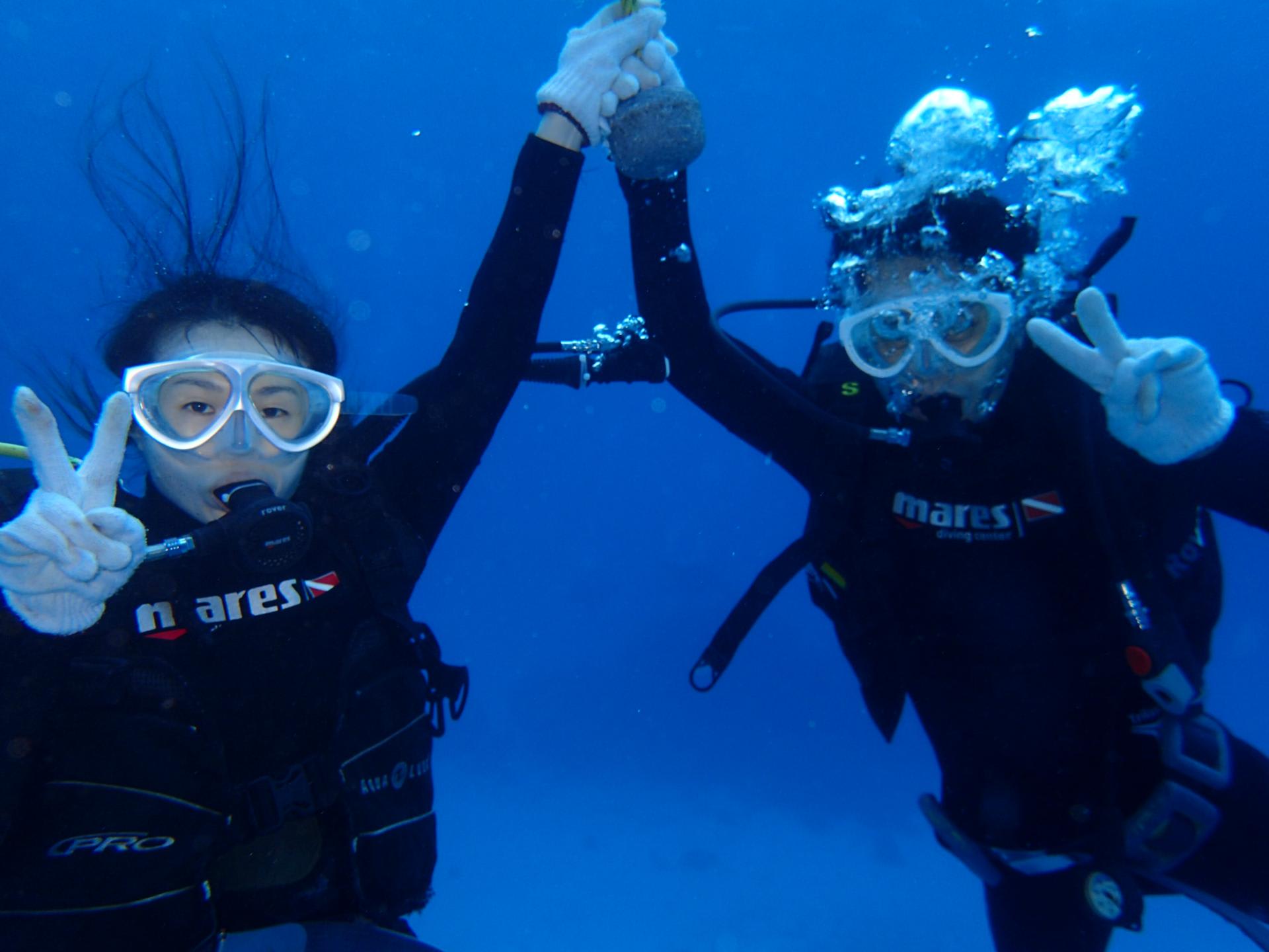 コンディション:南東~南西の風 気温25℃ 水温15℃ 透明度20m
