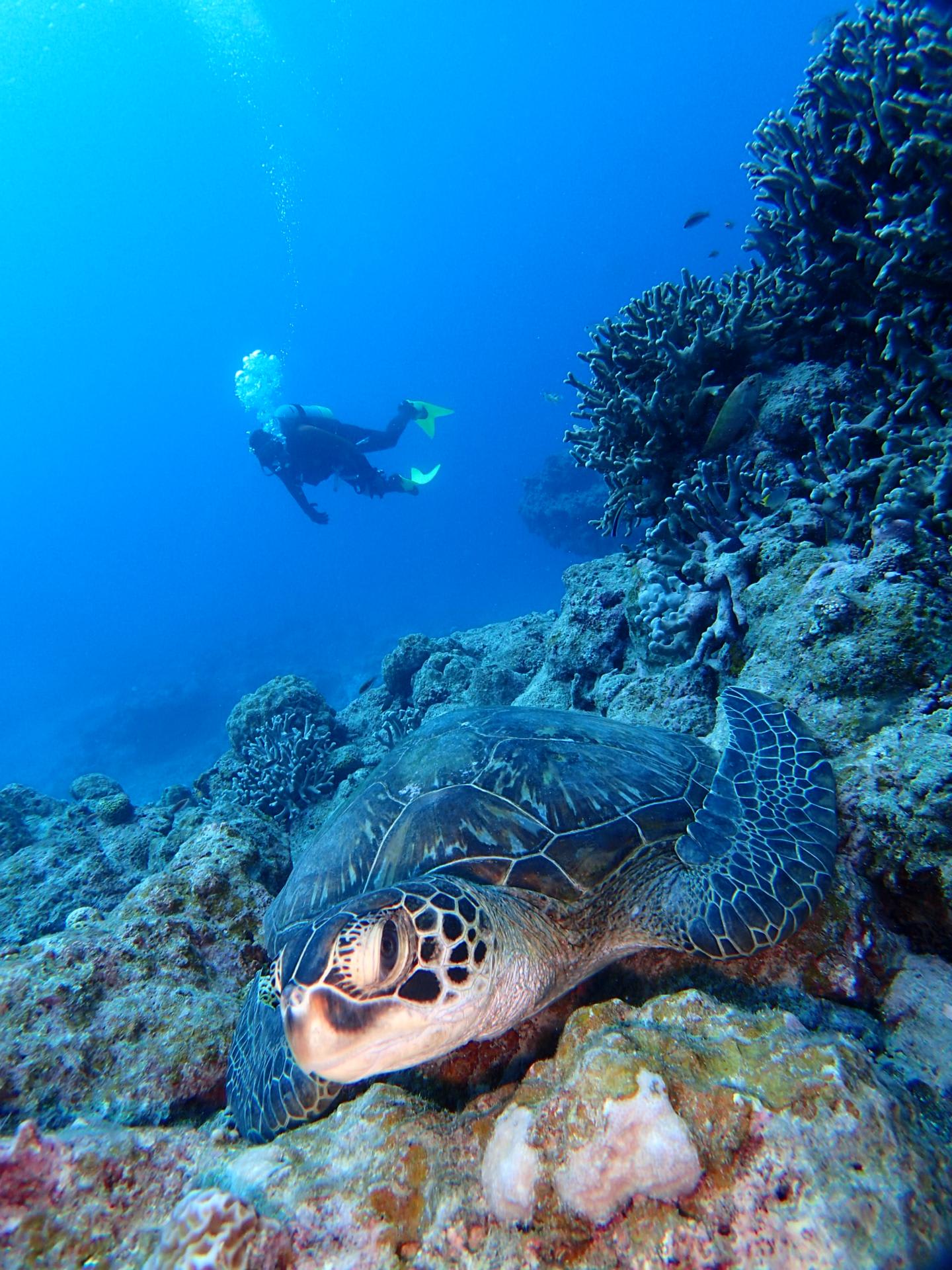 いつもの岩場には、アオウミガメさんがグースカピースカしてました。