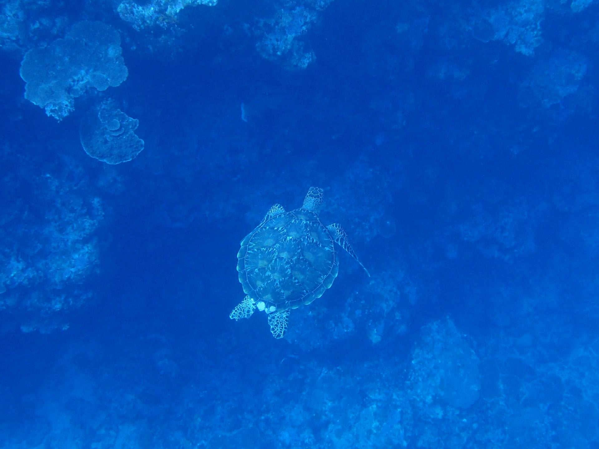 カメさんも岩陰からにゅっと登場して一緒に泳いでくれました