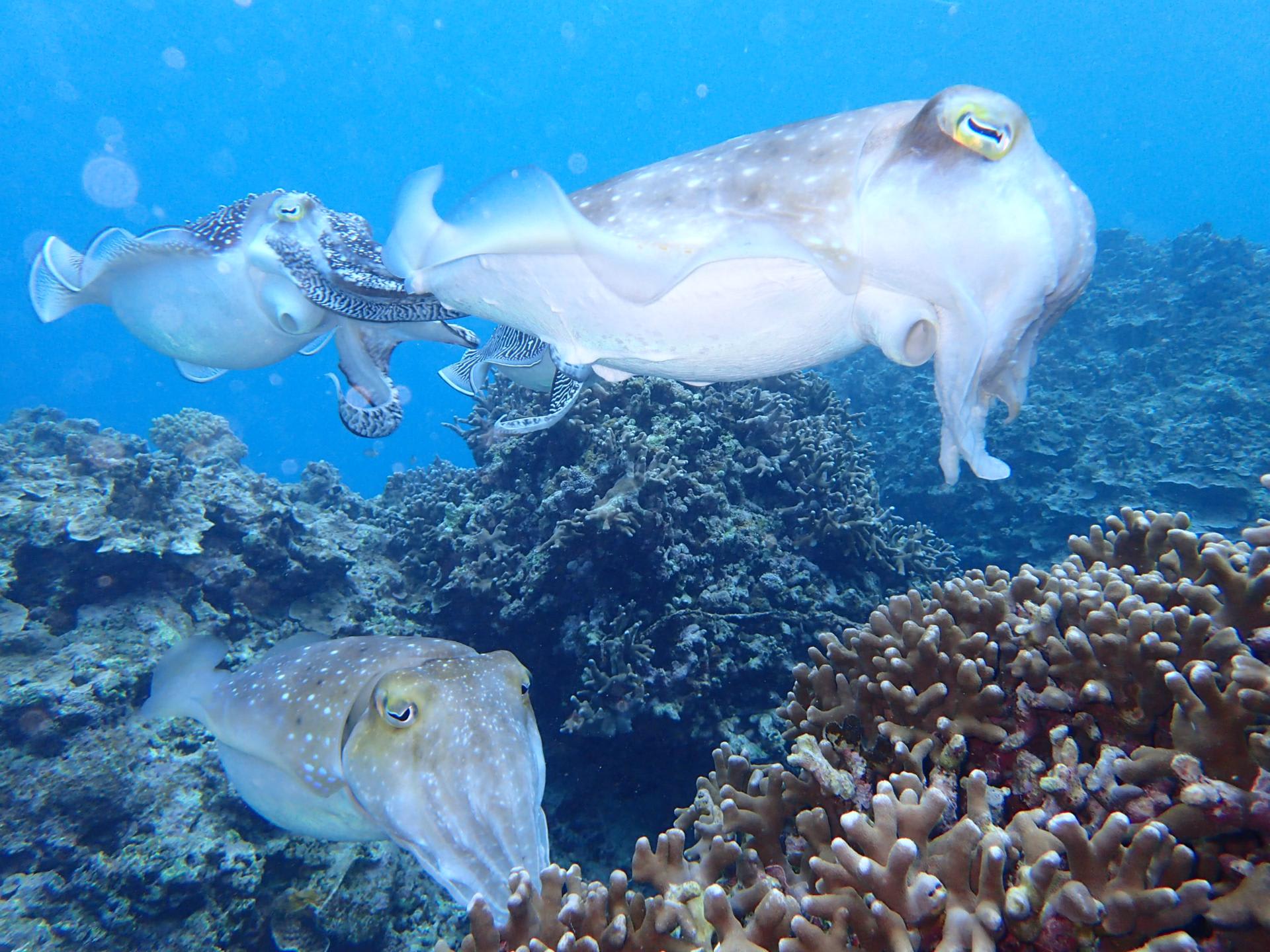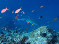 カメさんに コバンザメつけたホワイトチップ コブシメに ハナゴイの群れ~~
