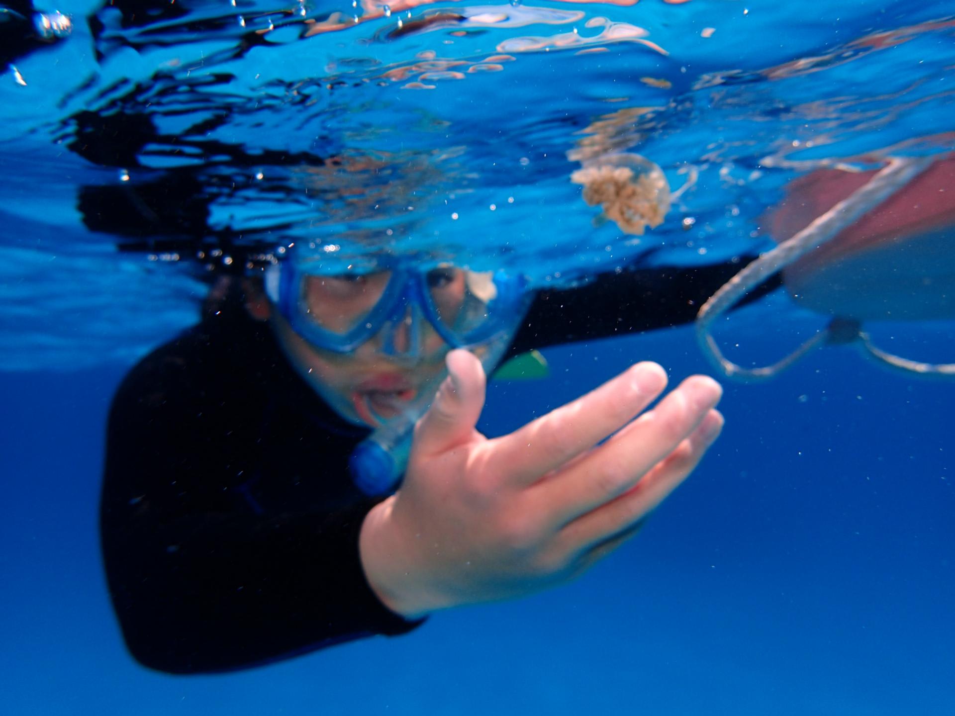 少年のように目を輝かせて、しばし優雅な泳ぎに
