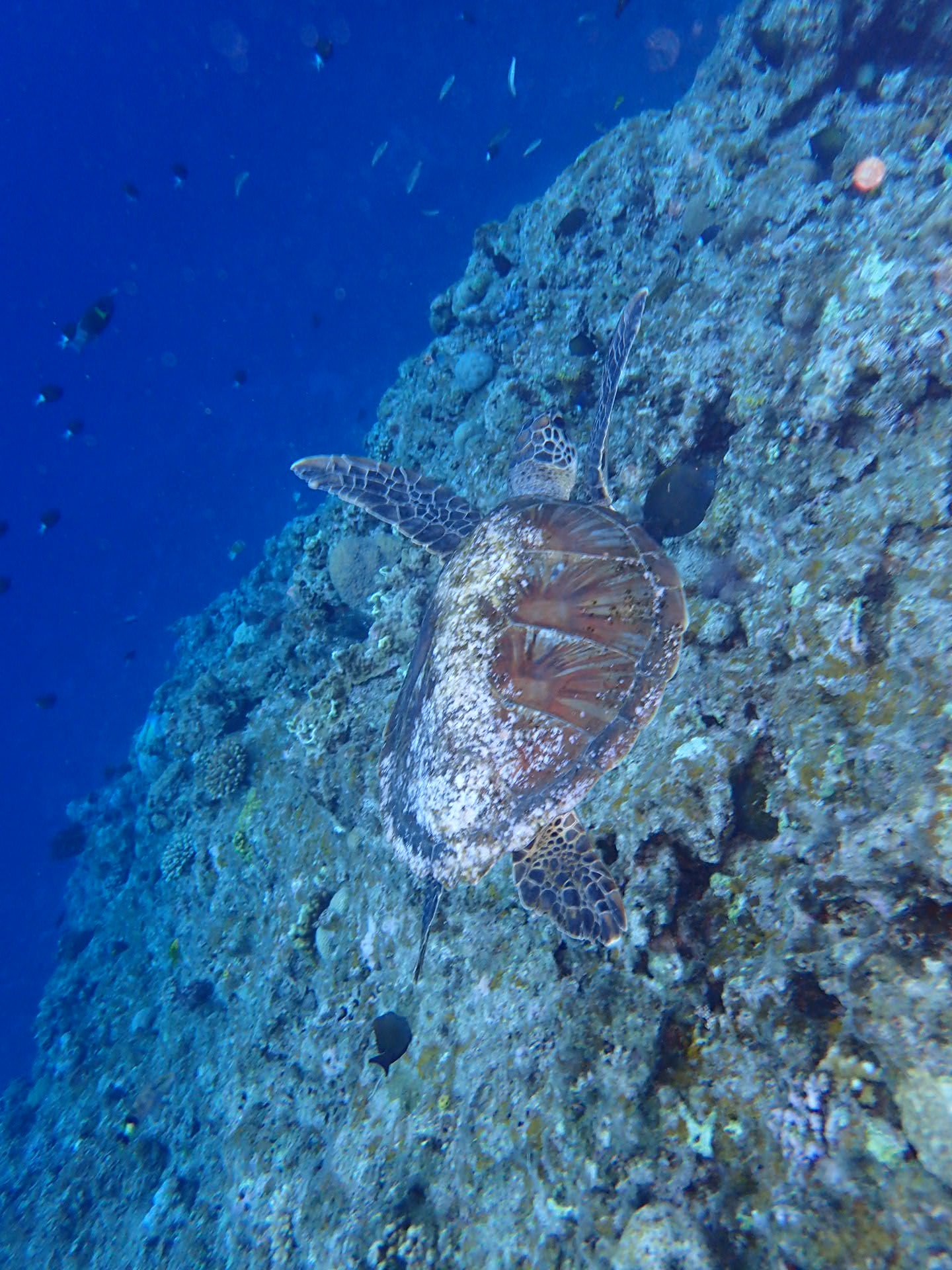 ノコギリダイに囲まれてうとうと日向ぼっこのカメさんいましたね~♨♨