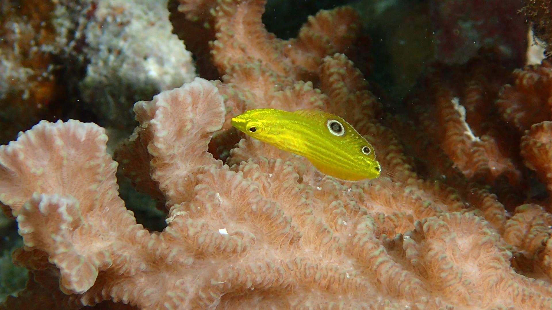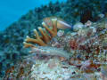 リーフの上にはドきつい色に変身してきたベラやスズメダイがたっぷり♪