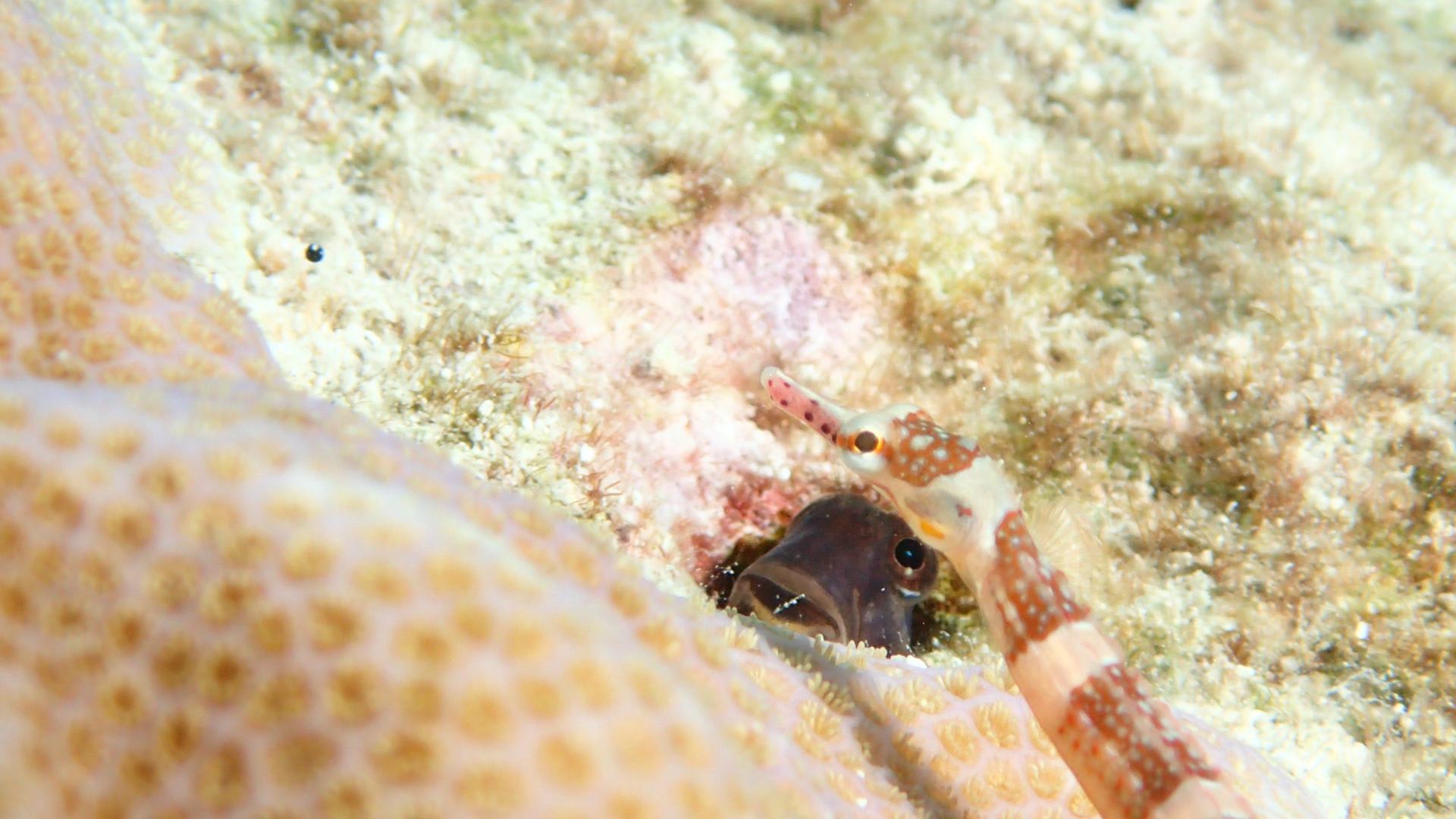 イシガキカエルウオがオビイシヨウジに驚いてるシーンが超カワイイ(^○^)