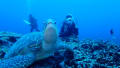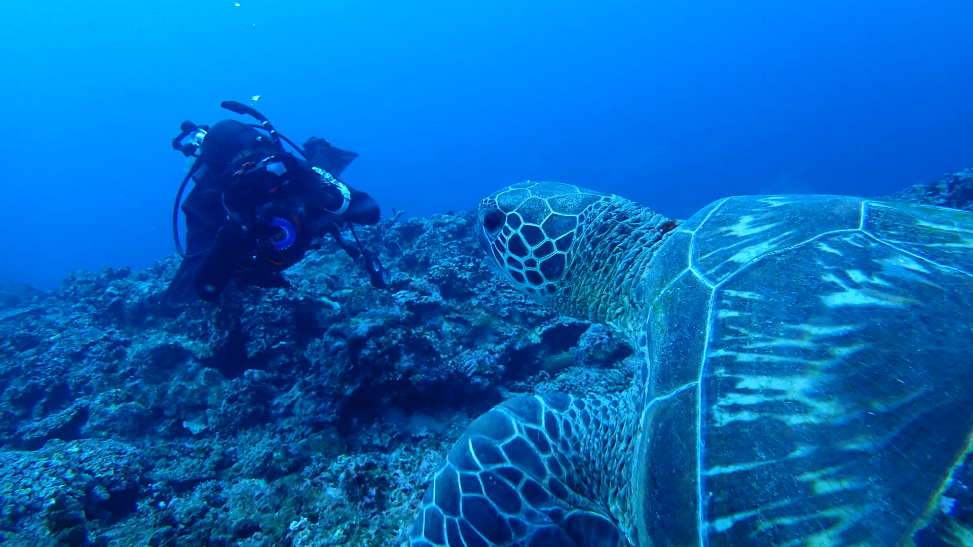 眠くてぼぉ~っとした顔の大きなアオウミガメと