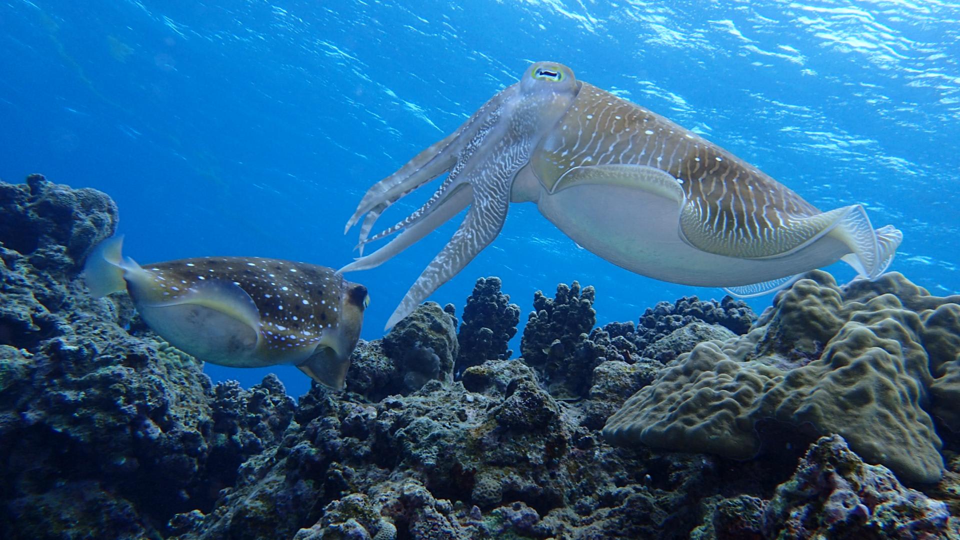 カップルのコブシメちゃんが付かず離れずで仲良しこよし