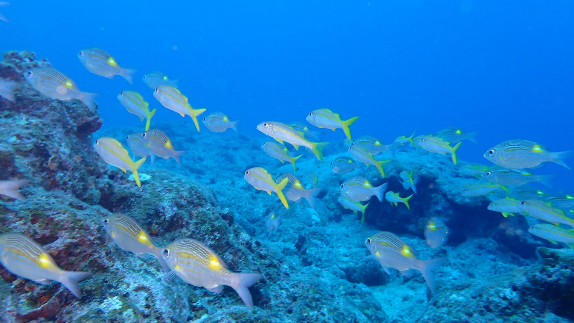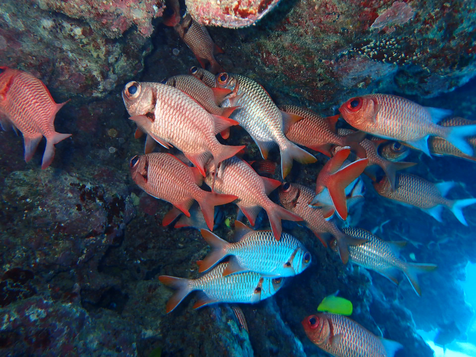 タカサゴ類がうじゃってて賑やかな水中ですー。。