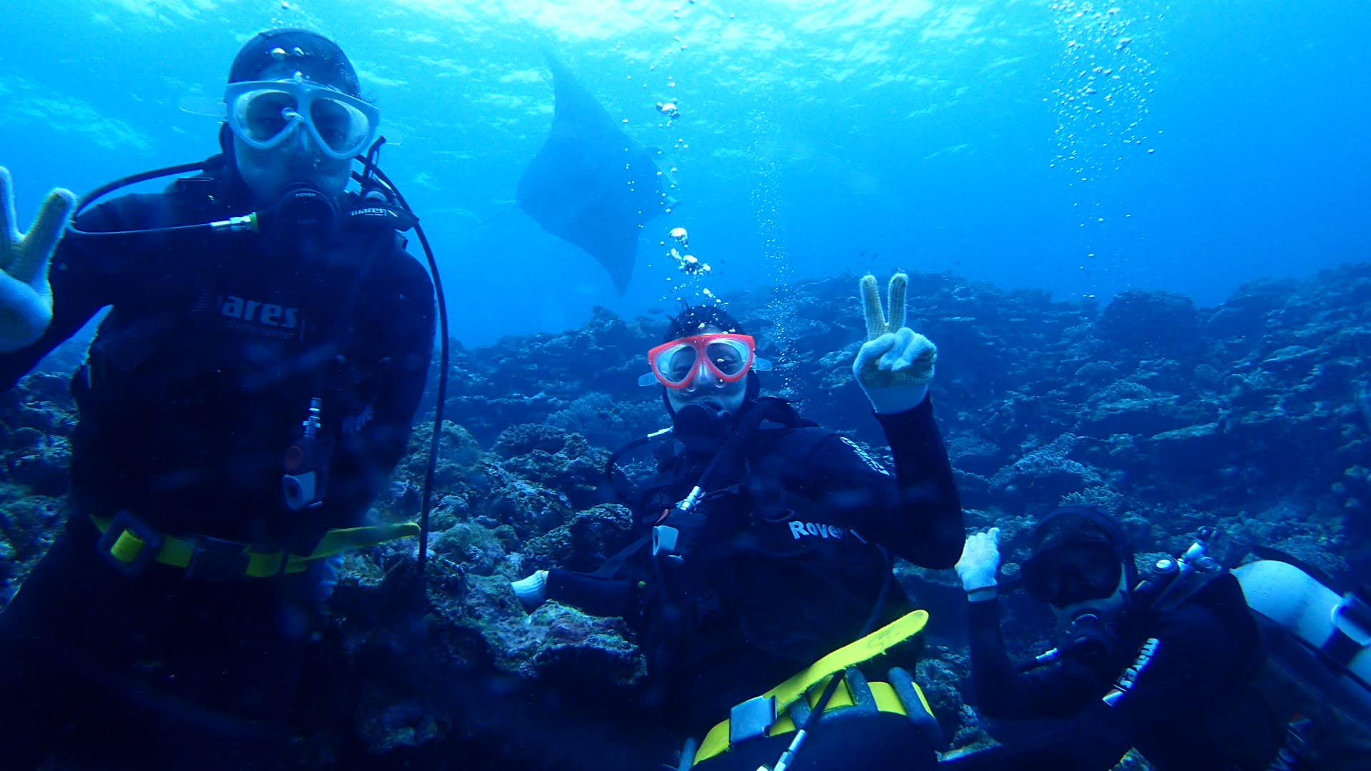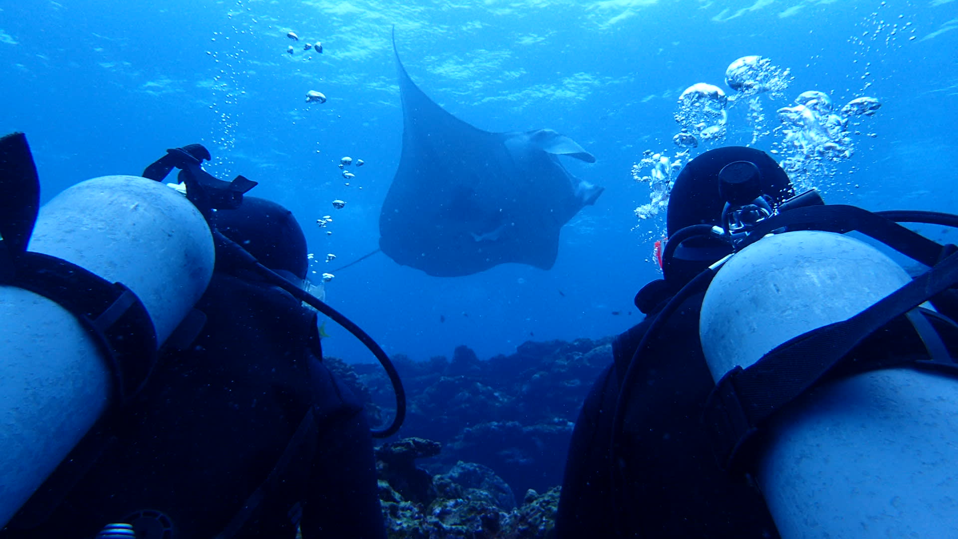 東の根方面に泳いでいくとマンタが突進してくるではないですか!!!!!!