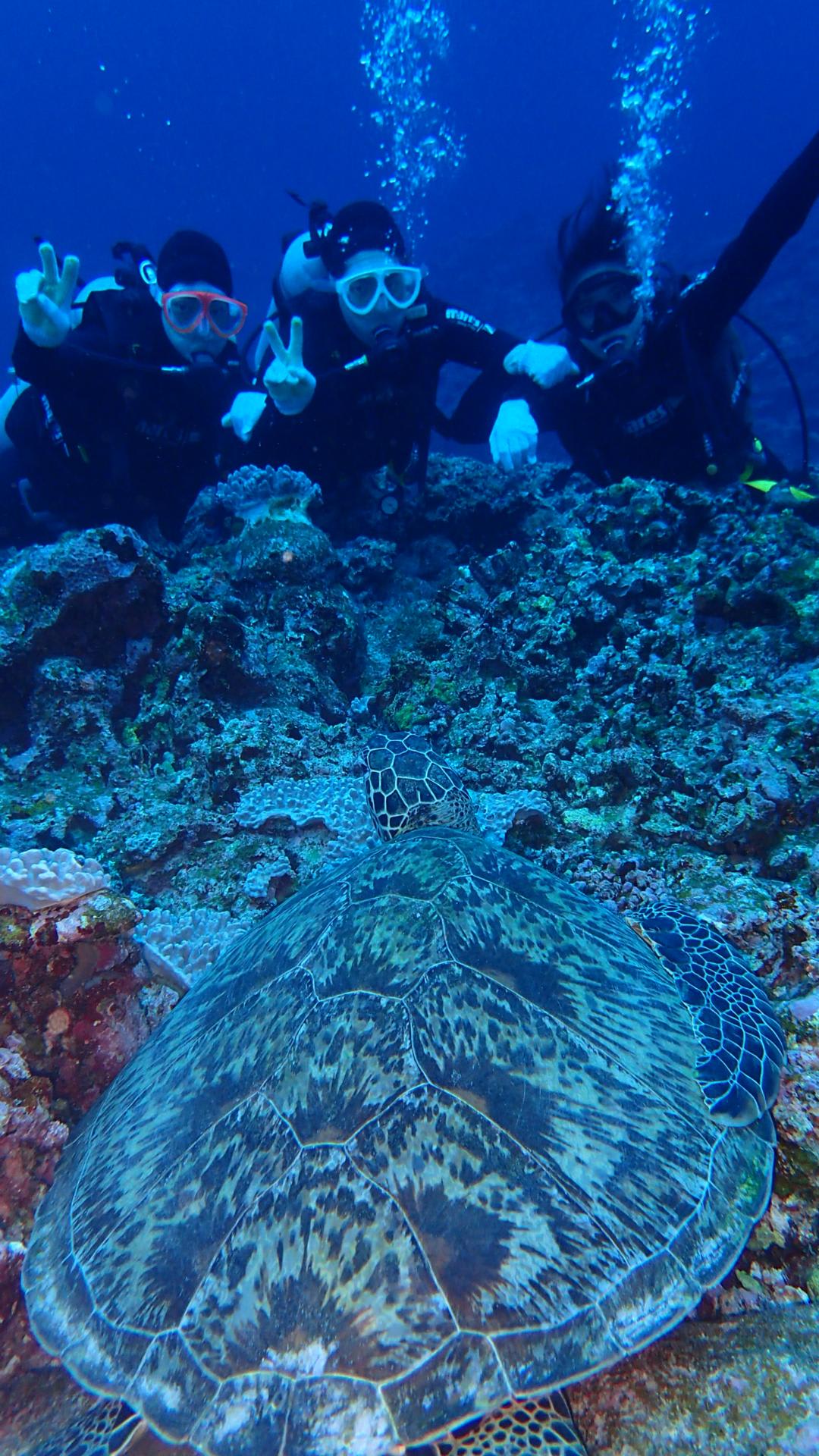 大きなカメさんは全く逃げる気配がなかったので記念撮影までしちゃいましたヾ(o´∀`o)ノ
