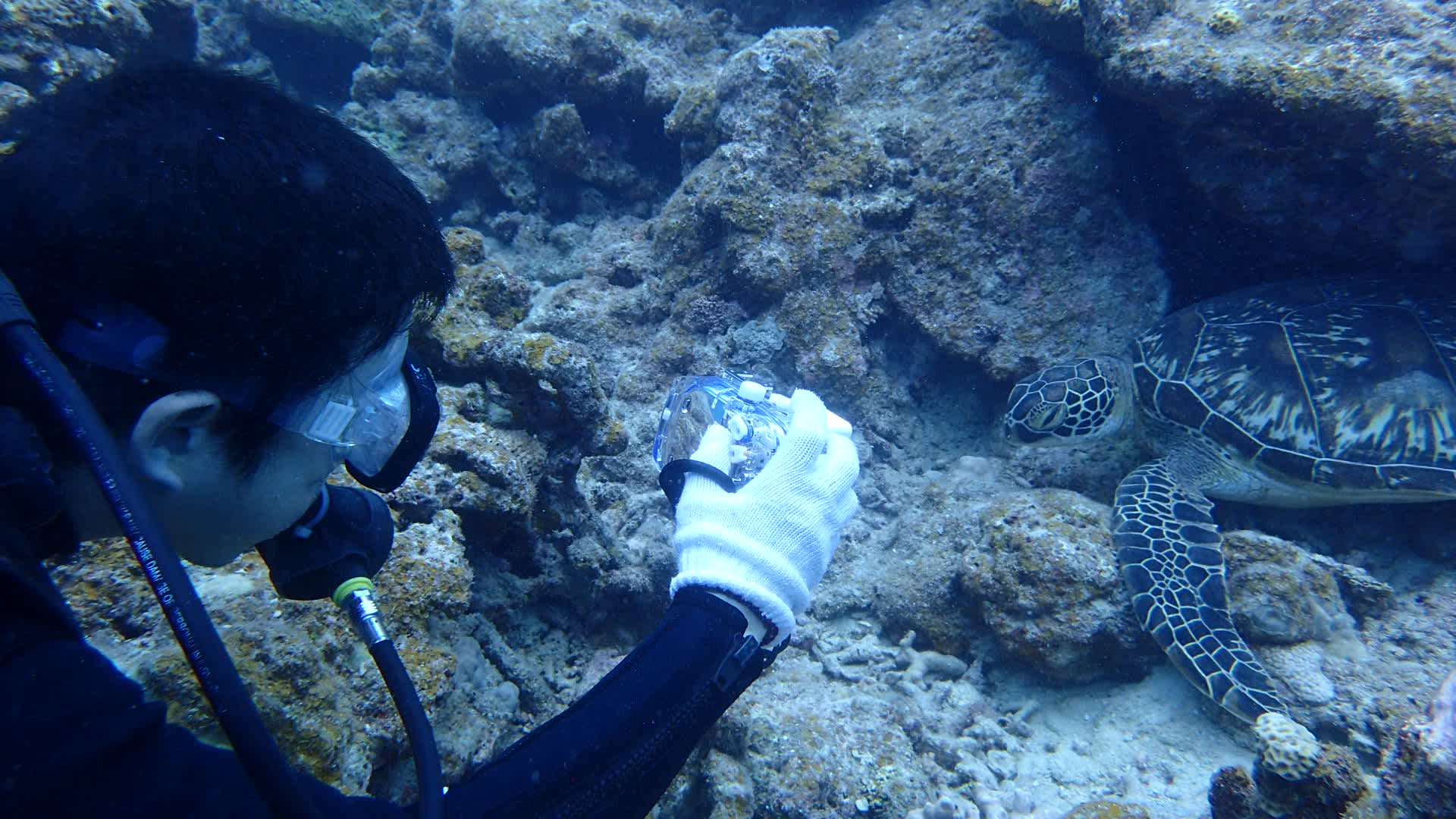 いつものカメさんは、やはりいつものようにダイバーを警戒せず、、、。