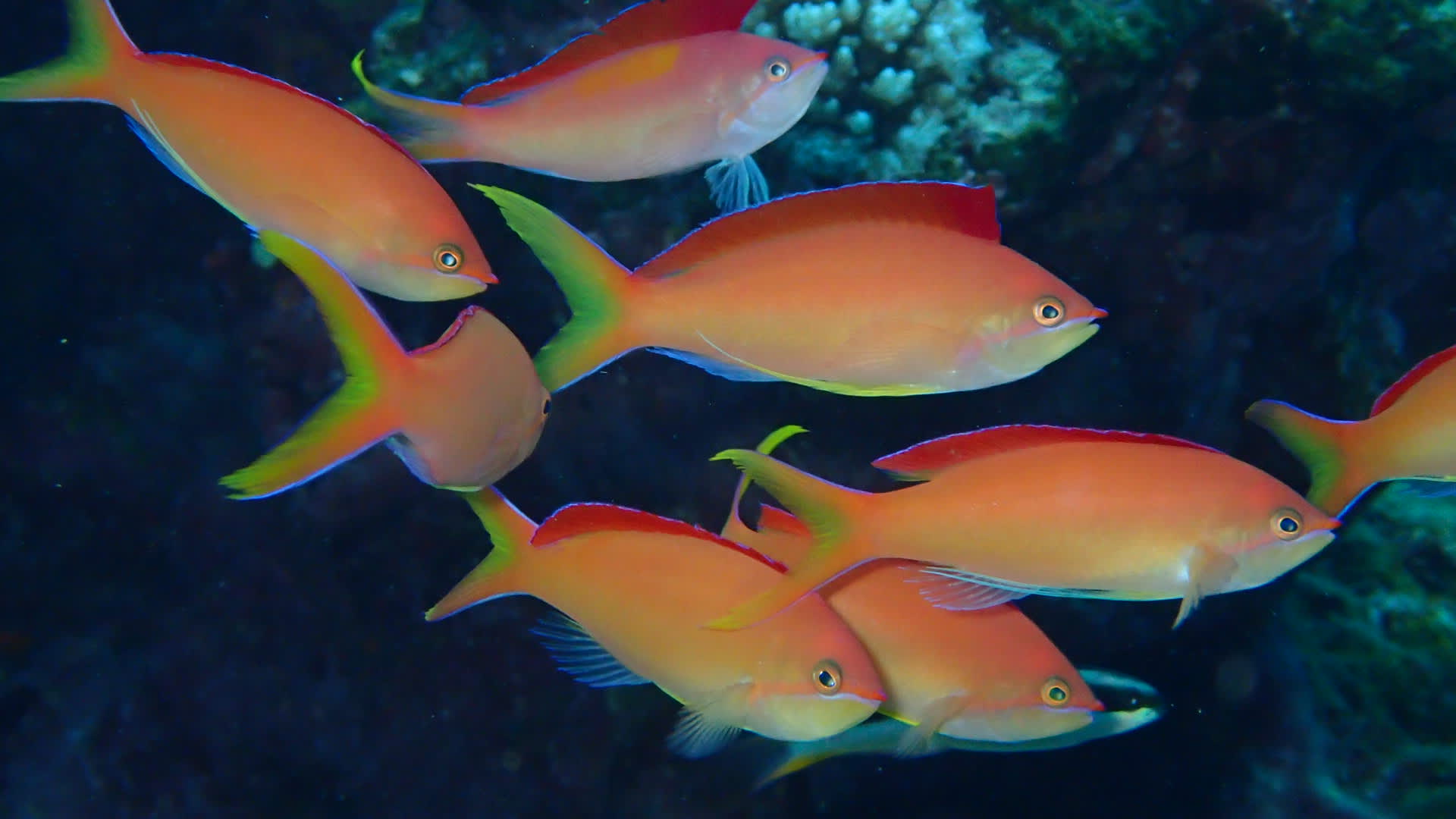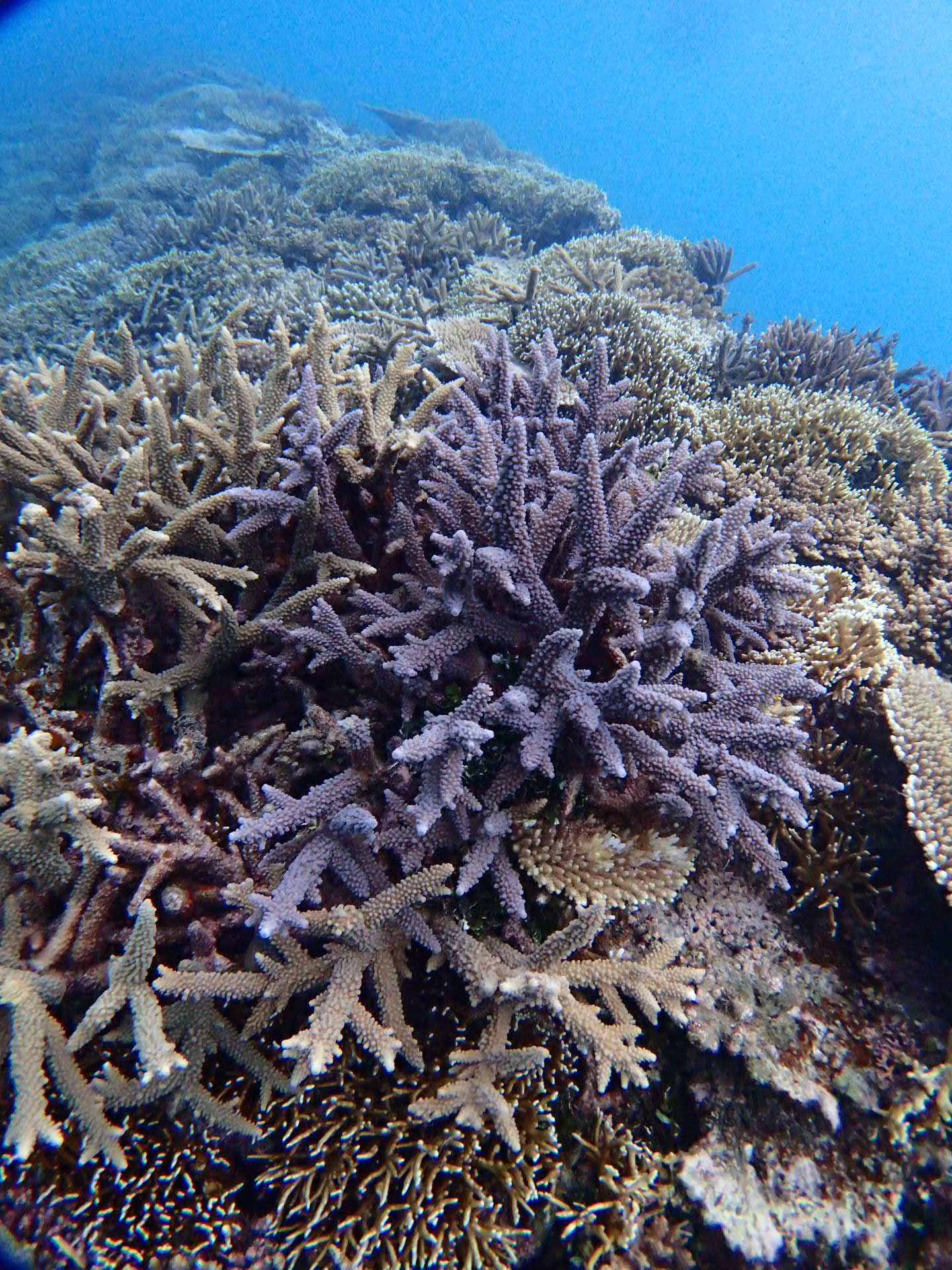 色とりどりの枝サンゴに それなに群れなす魚たち(*^_^*)