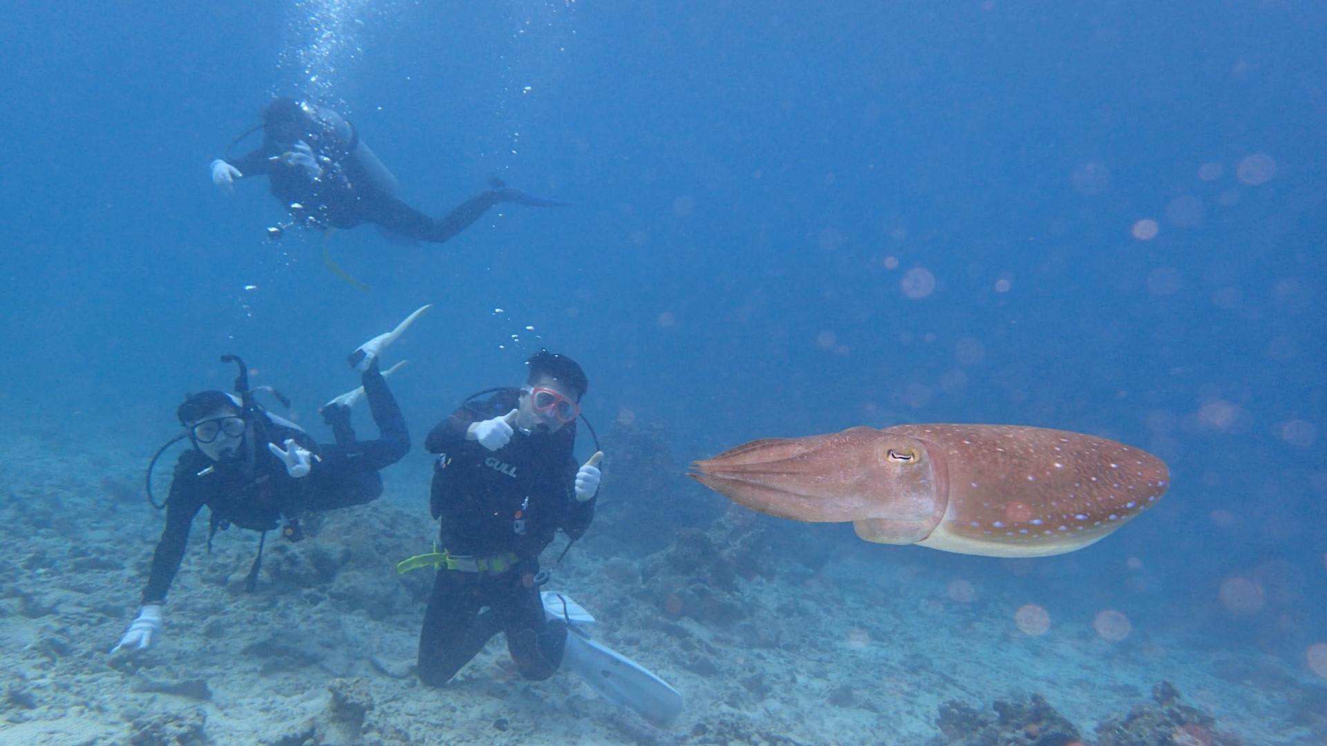 コブシメさん警戒心が強く産卵はしてませんでしたけど、岩陰に隠れてる