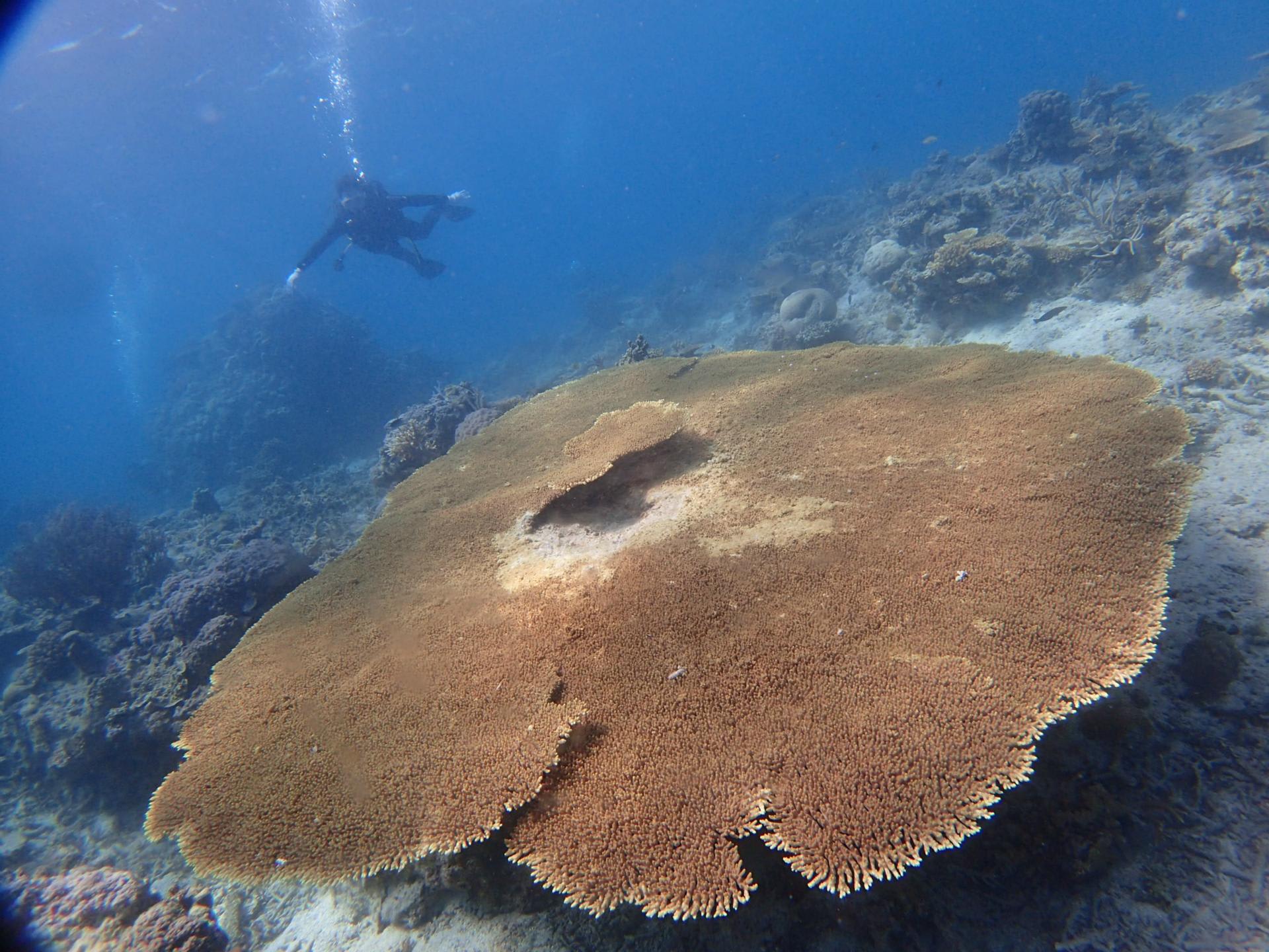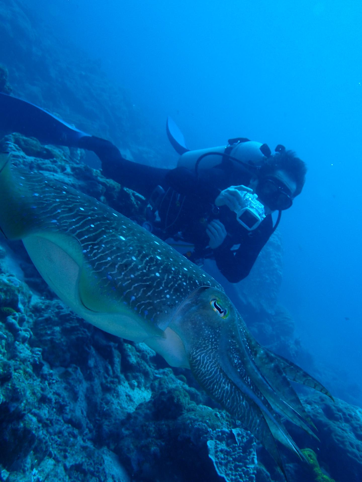 点在するユビエダハマサンゴの周りを行ったり来たりコブシメが遊んでました~