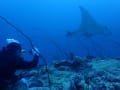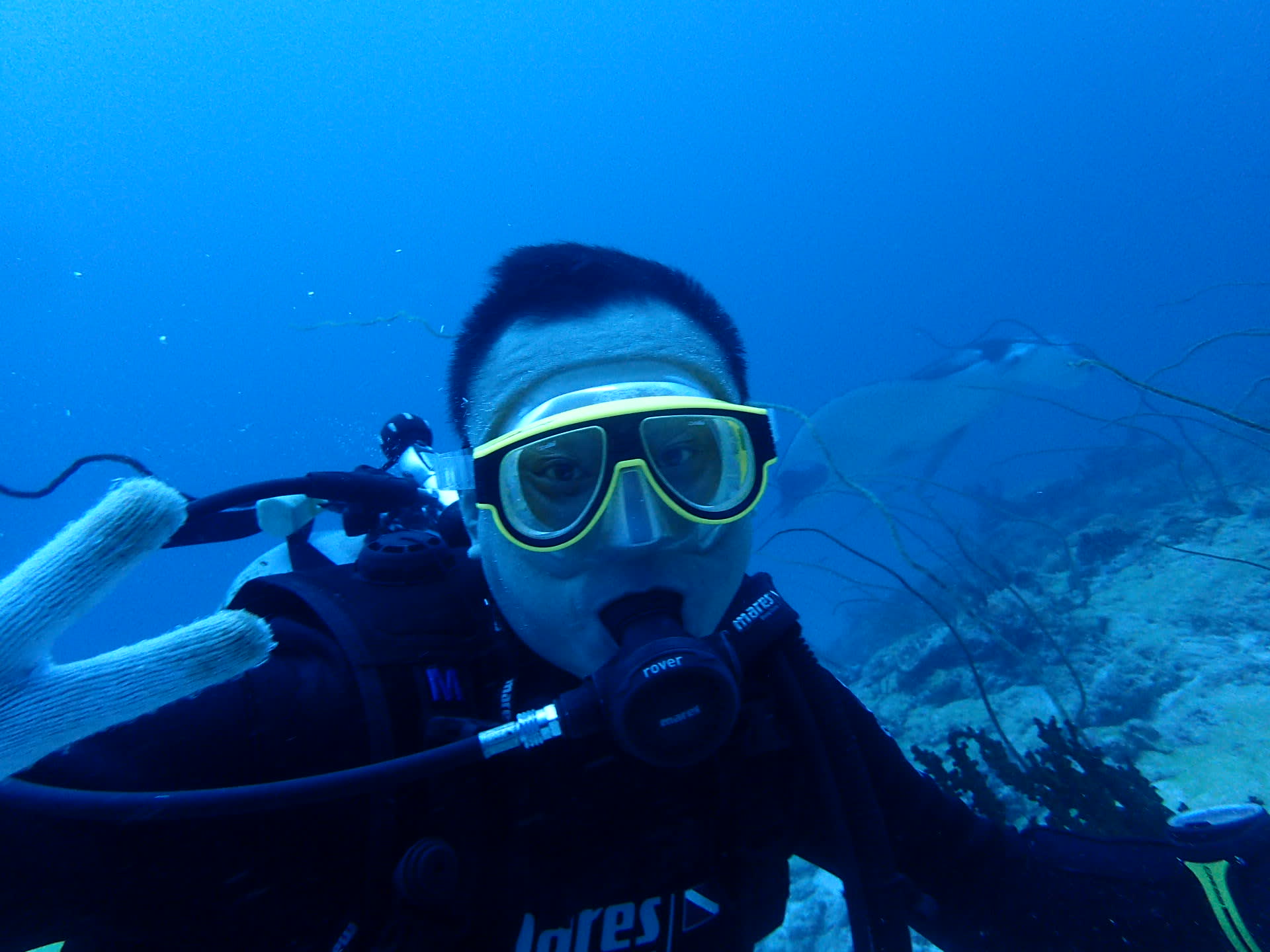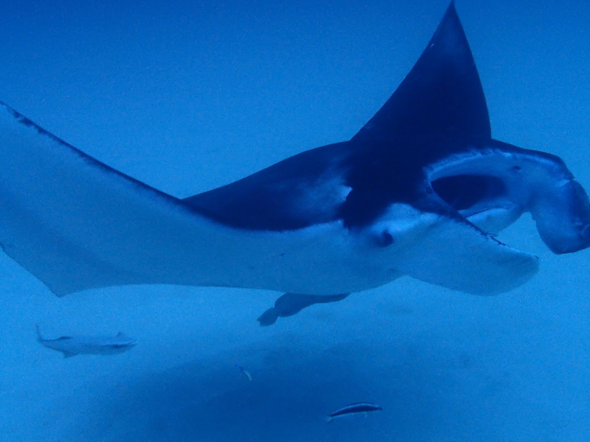 やや濁っていましたが、砂地に降りるとマンタちゃん発見(^◇^)