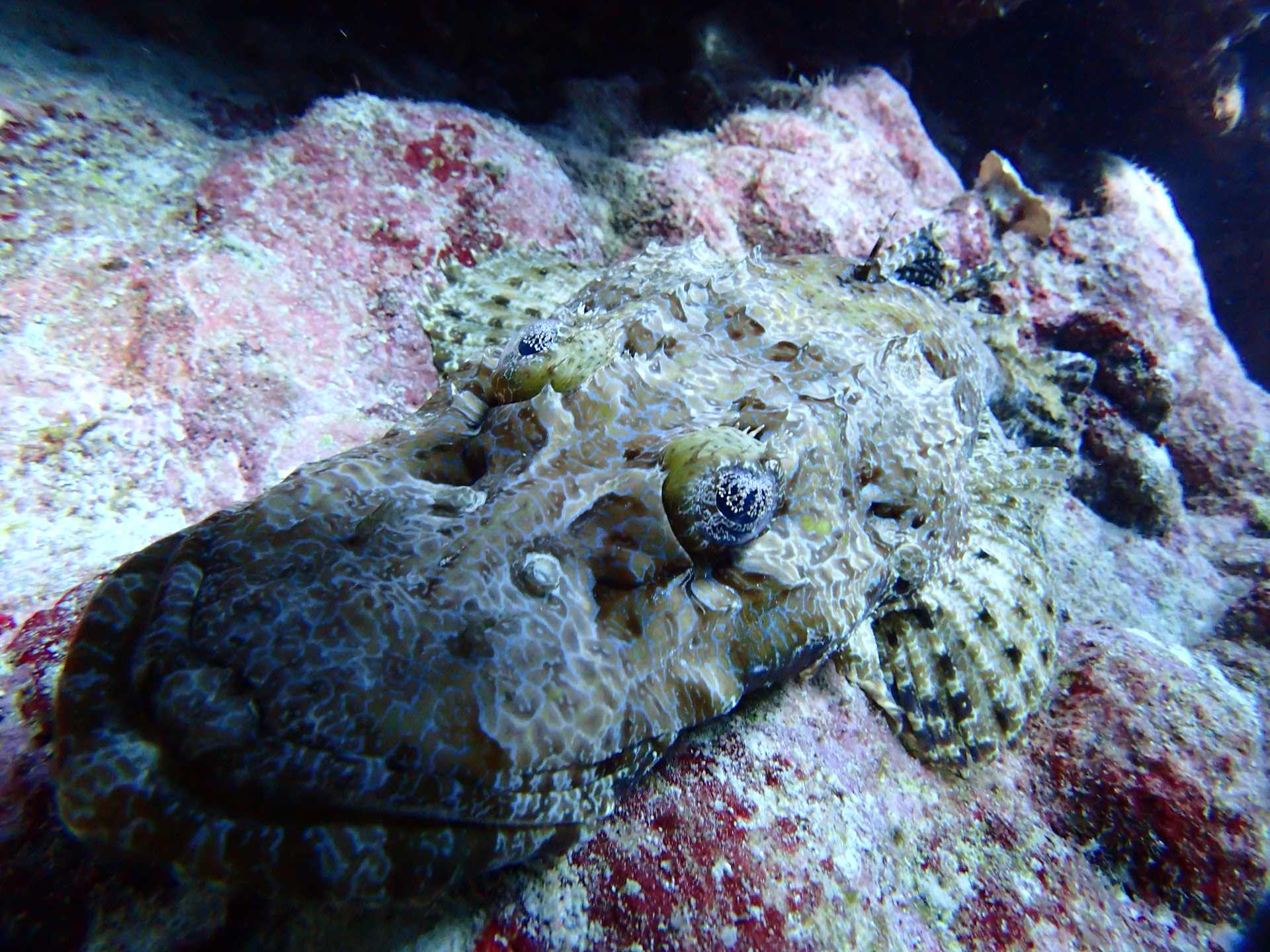 岩にへばりつくハダカハオコゼも愛嬌がありました☆