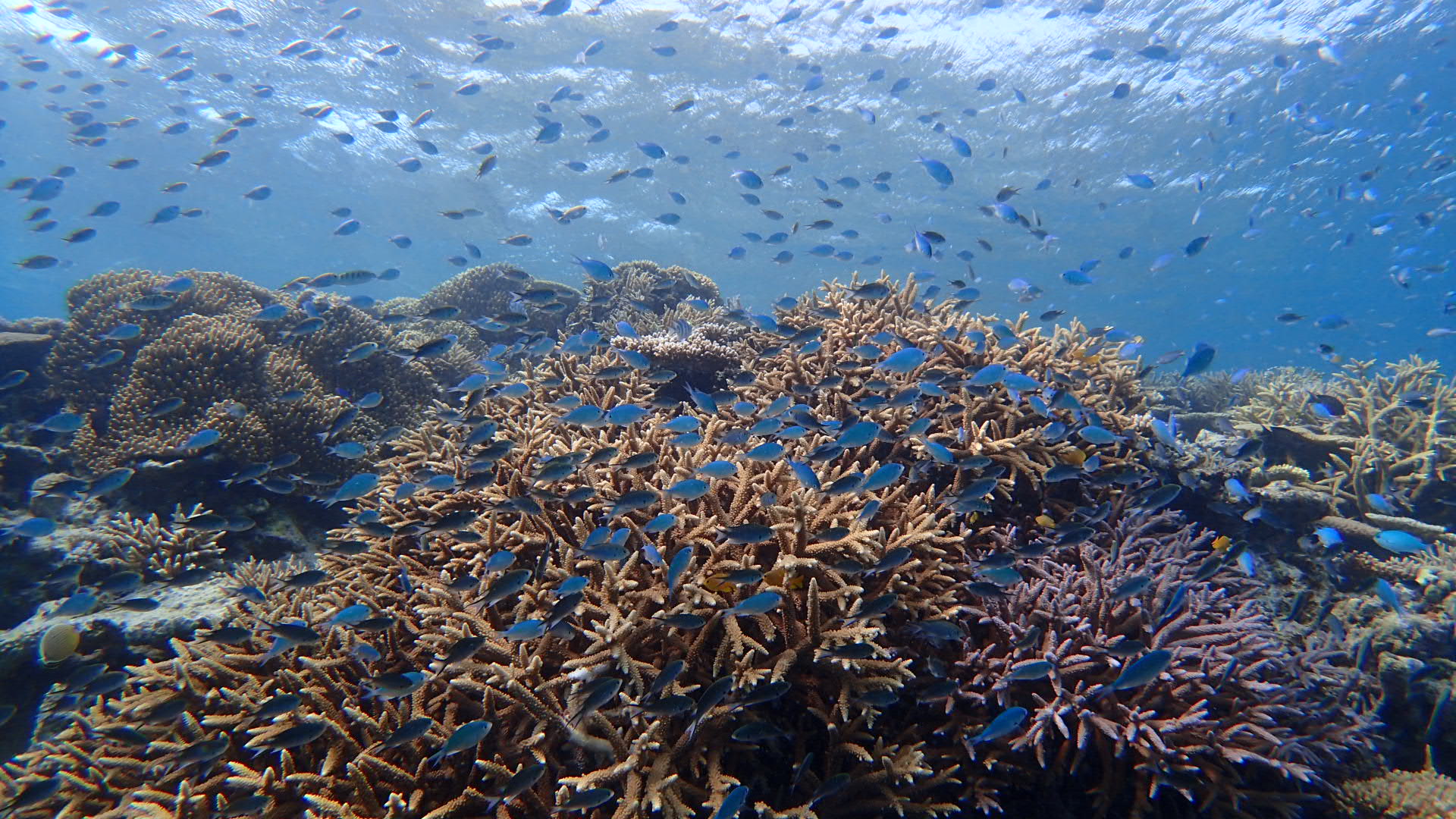 大盛りのサンゴ丼の上に無数のスズメダイがトッピング♪