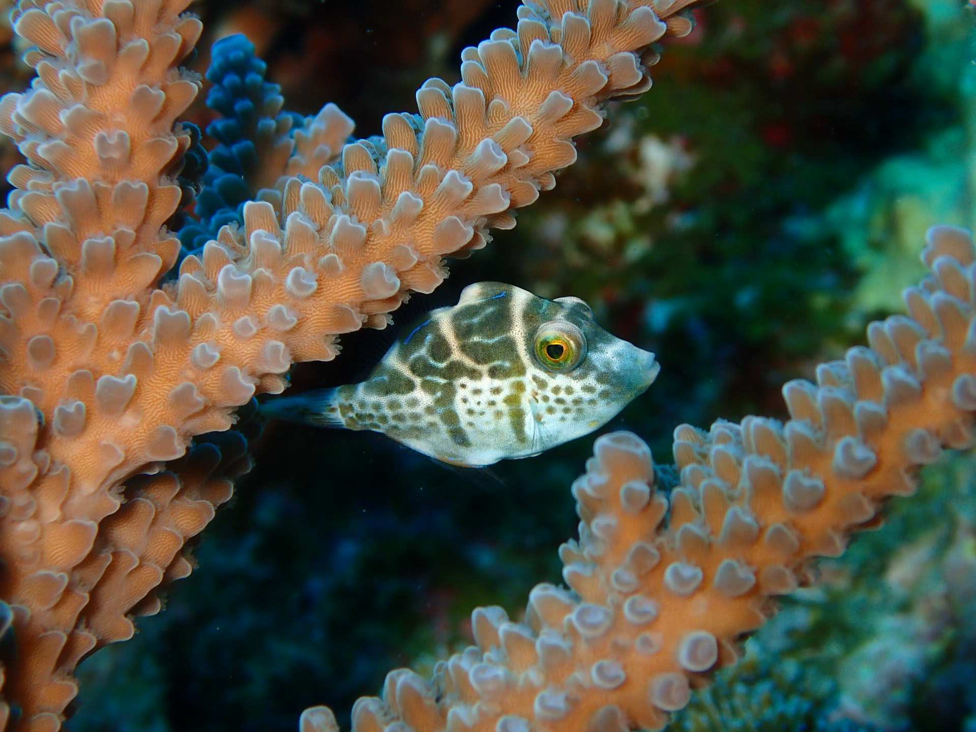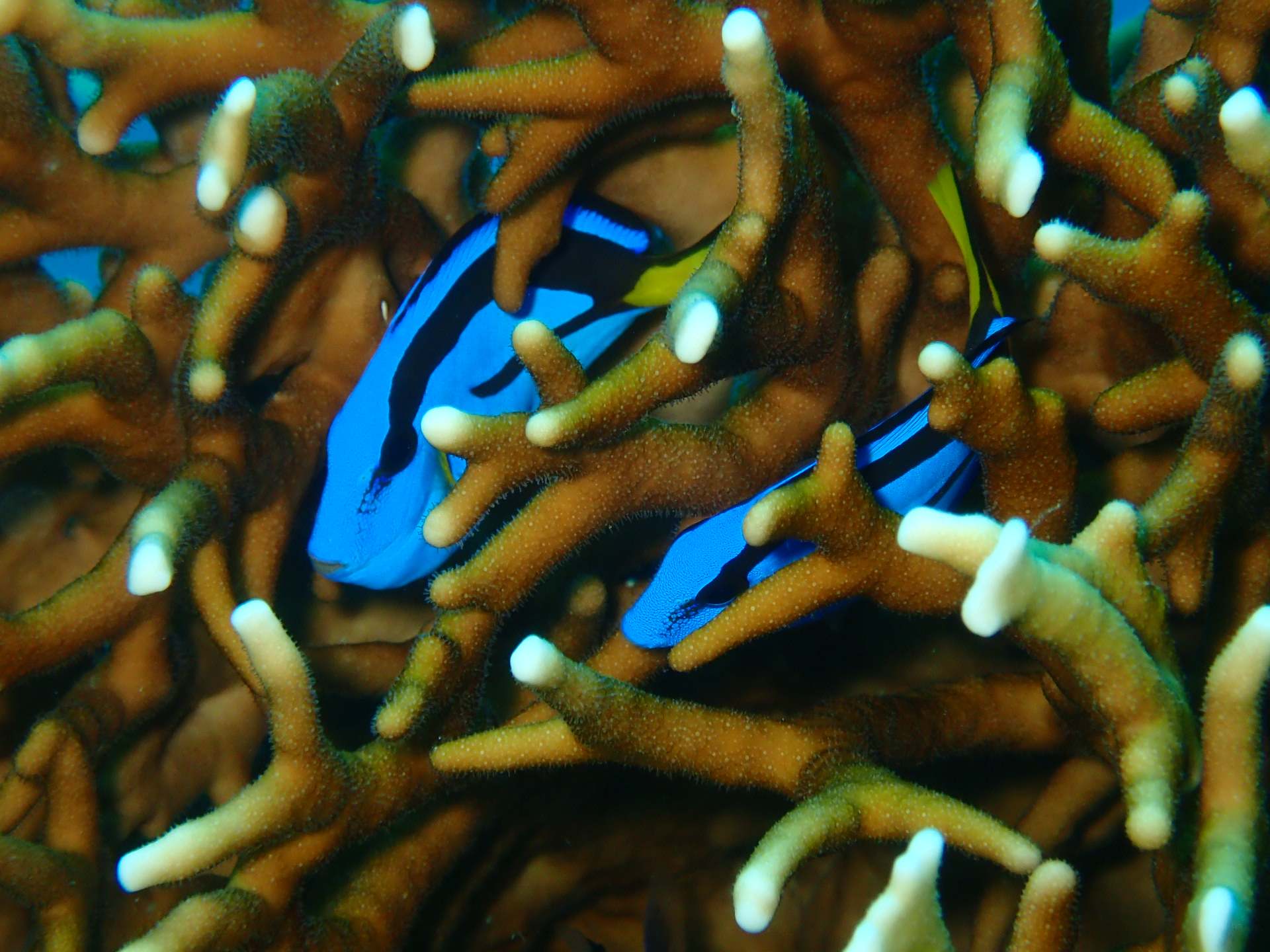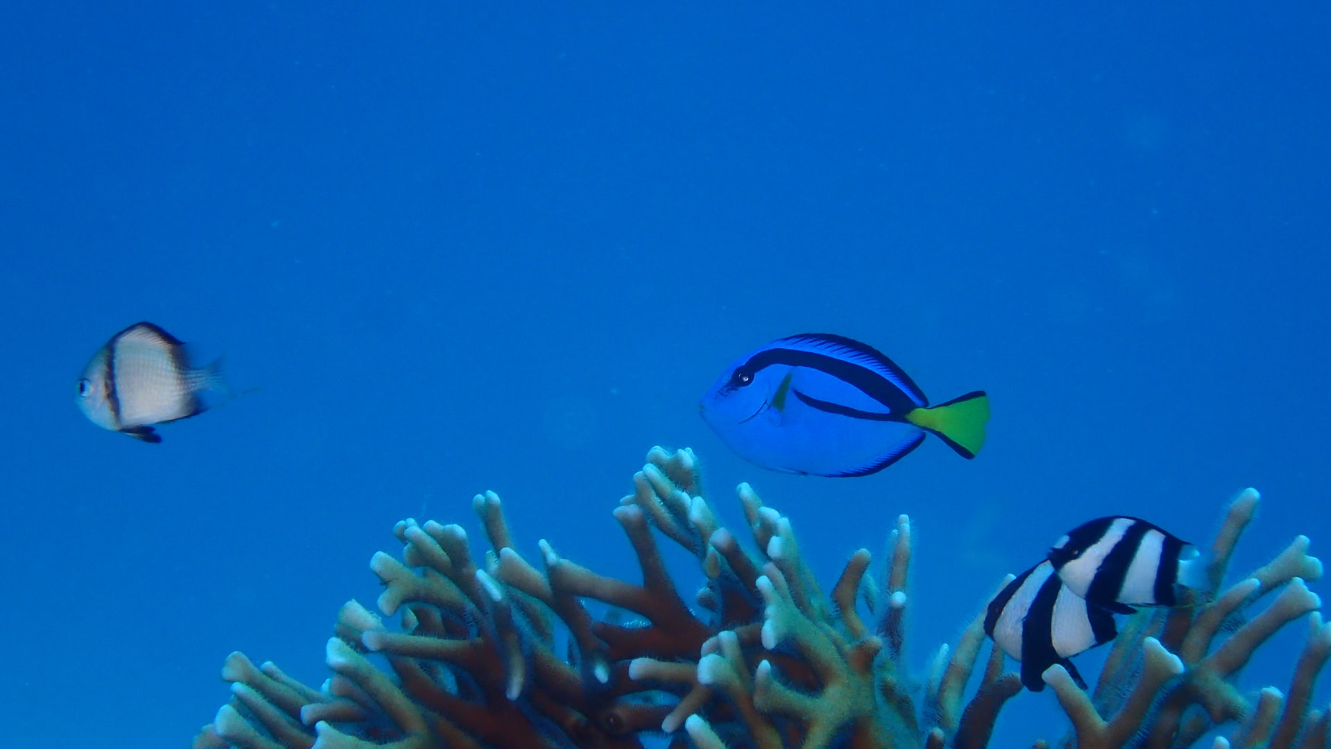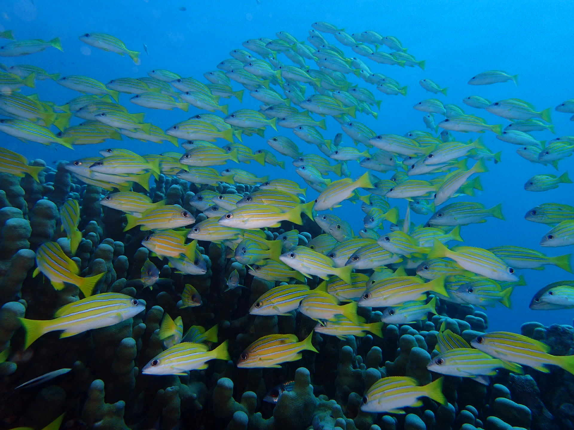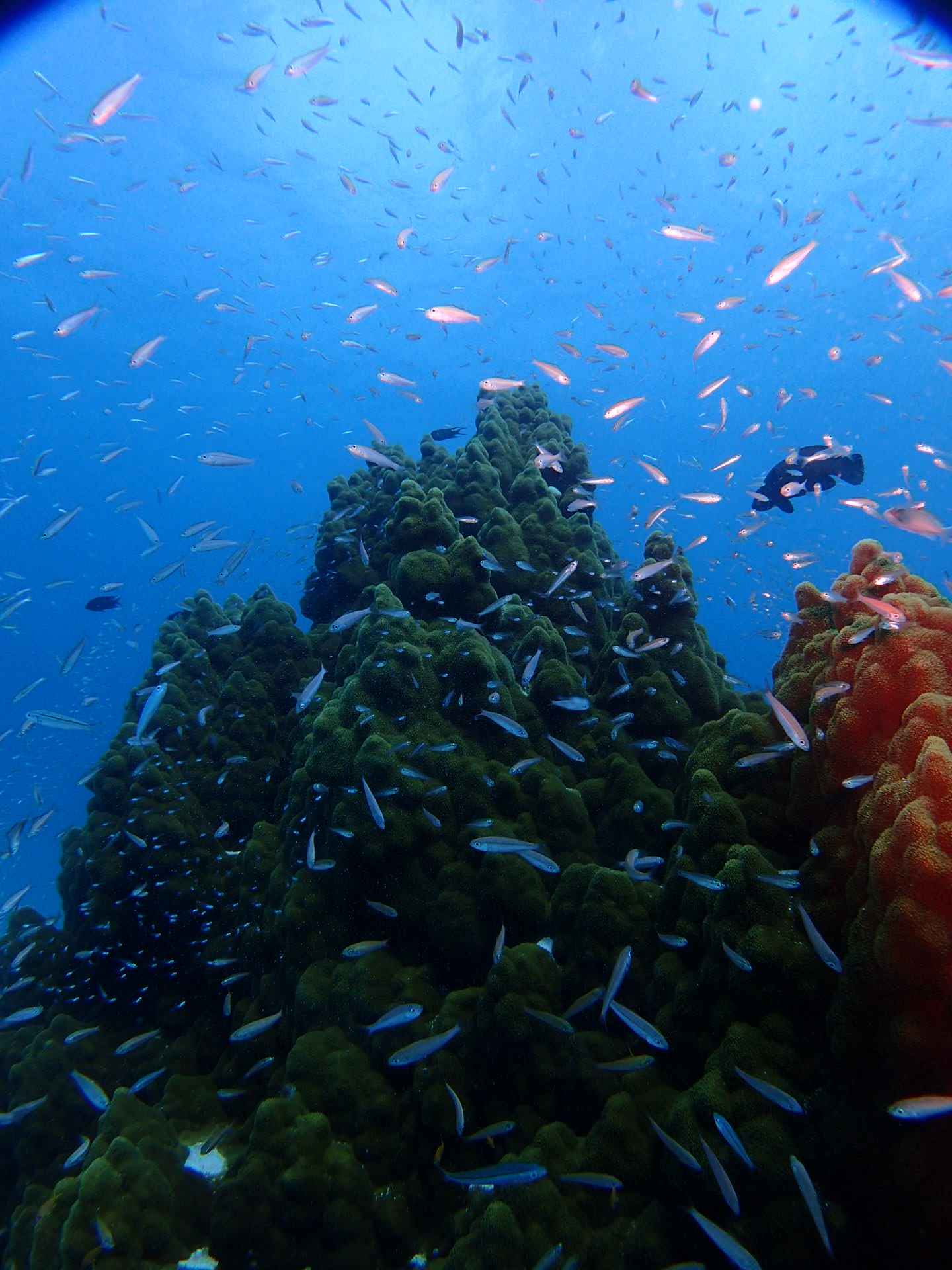 点在する小さな根には スカシテンジクダイやグルクンの子供がたくさんおり