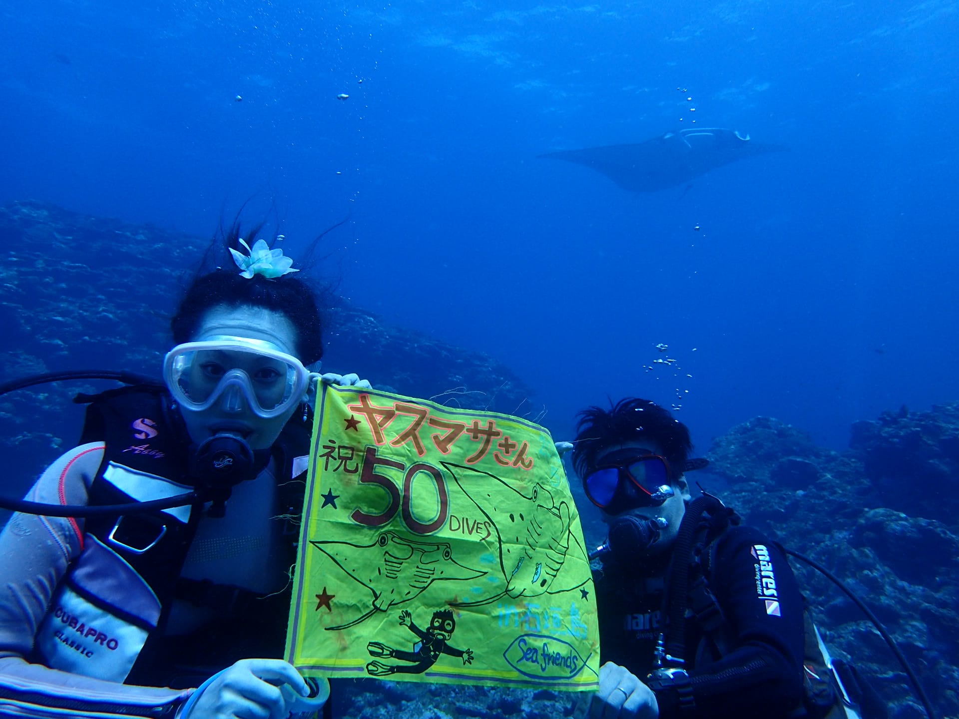 ★★☆☆ここでリピーターの恭ちゃんさん50ダイブ♪フラッグでお祝い~☆☆★★