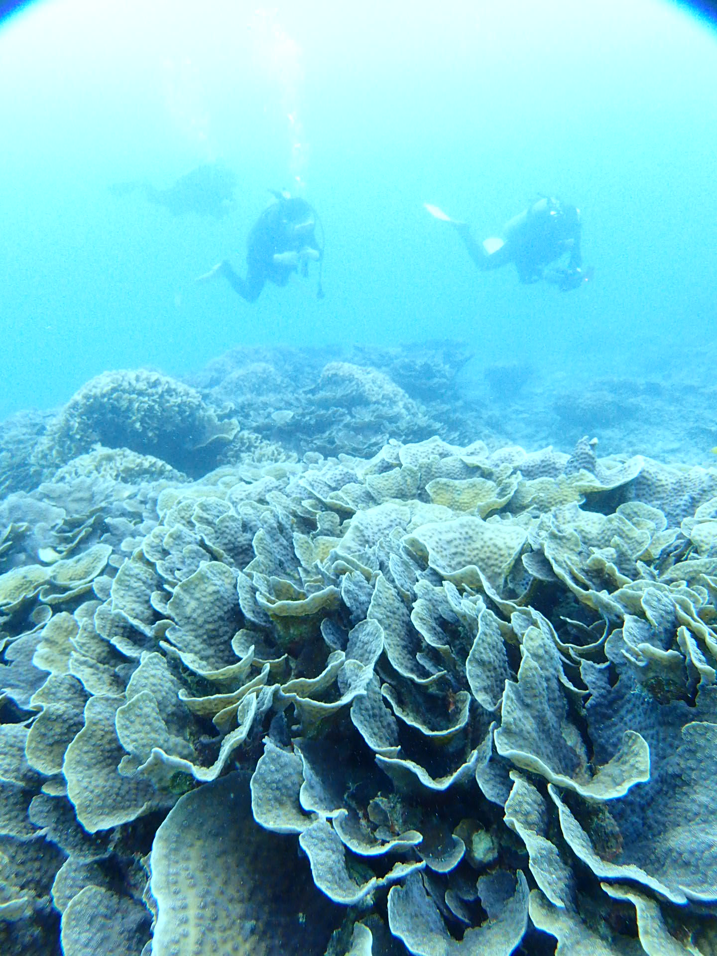 浅瀬には何種類ものサンゴの群生が、ずーっと広がります。