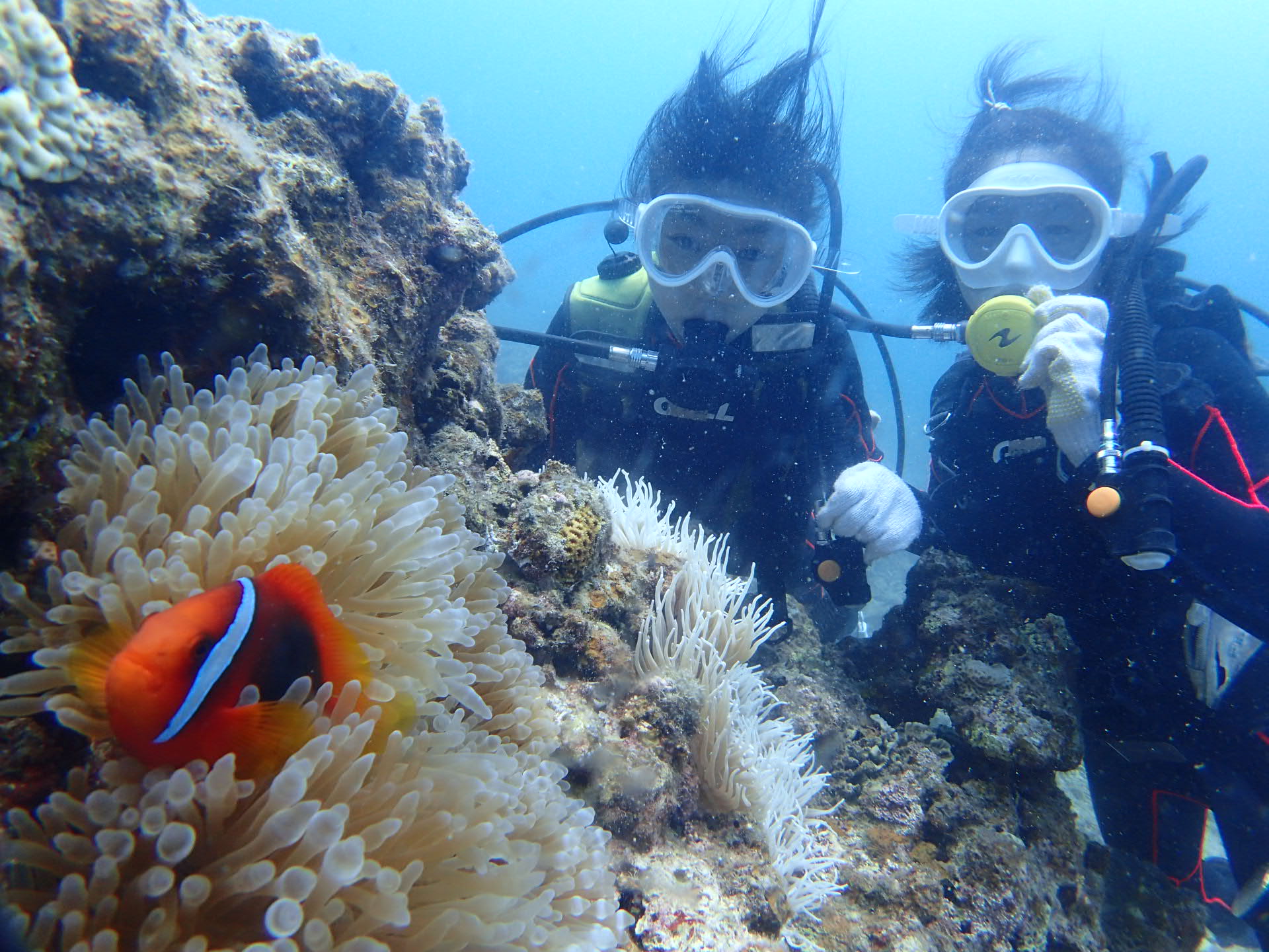 水底ではお父さんお母さん&かわいいクマノミが出迎えてくれちゃった(#^.^#)
