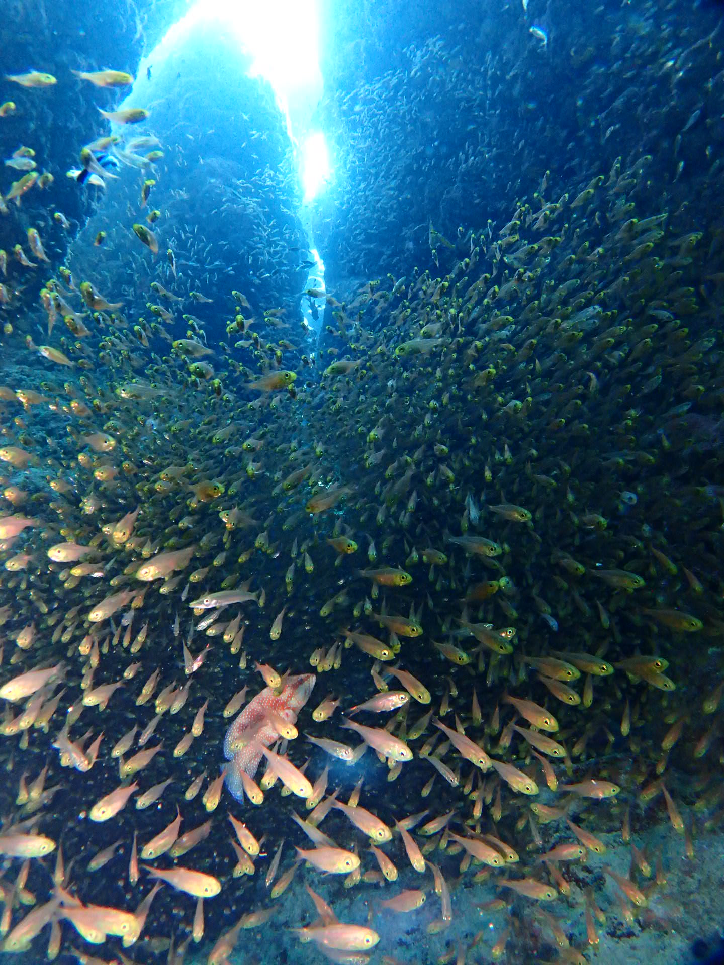 岸際のアーチの中はキンメモドキがどっちゃり群れていましたよ~
