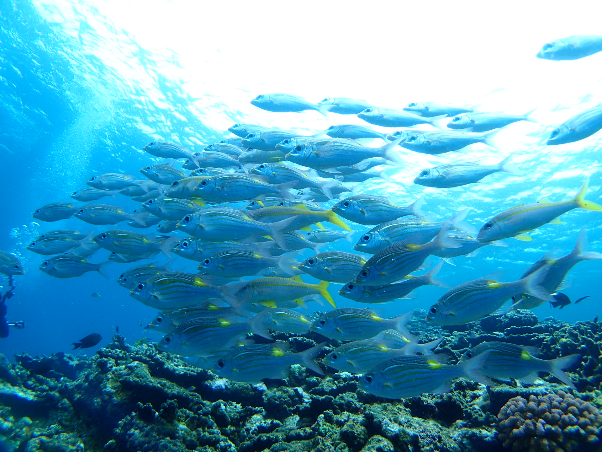爆発的に増えてるスカシテンジクダイやグルクンの稚魚に癒されますねぇヾ(*´∀`*)ノ
