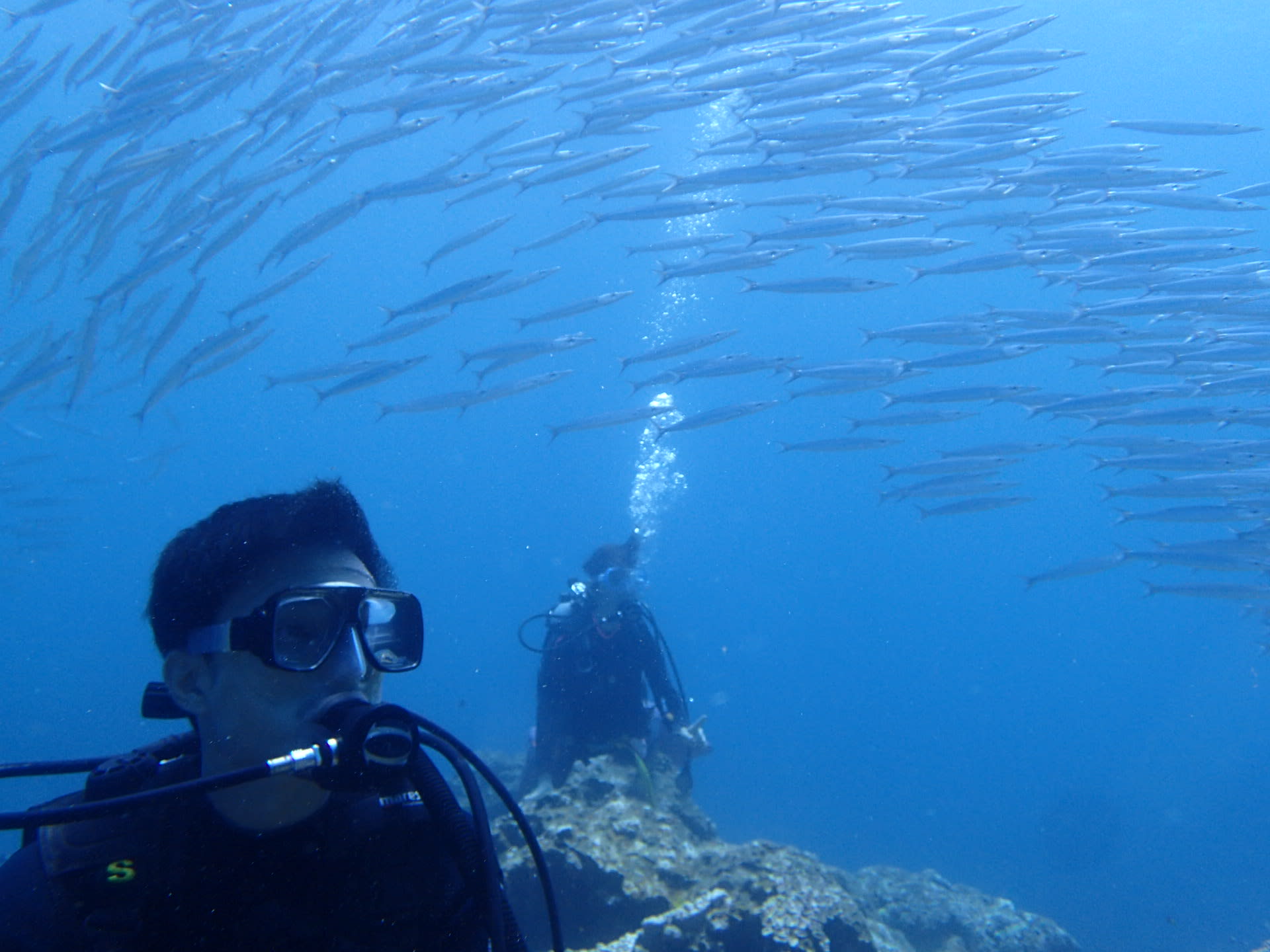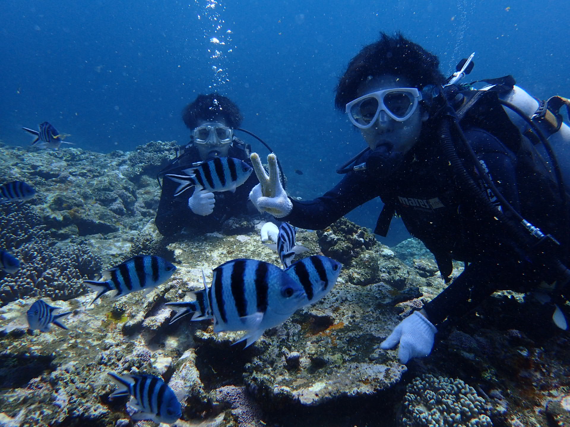 慣れない水中、慣れない耳抜き・・・っと思いきや!!みなさま余裕で海のなかー(“⌒∇⌒”)