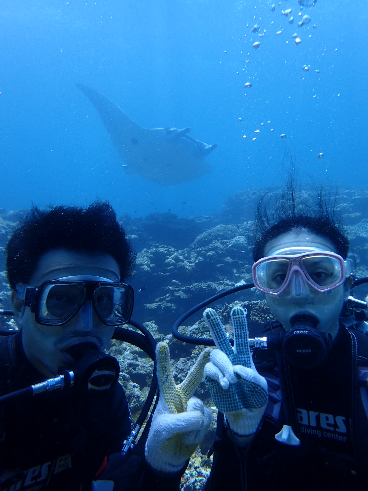 すぐさま海に飛び込むと、居るではないですか!我らが神!!マンタの登場でっっすっっO(≧∇≦)O