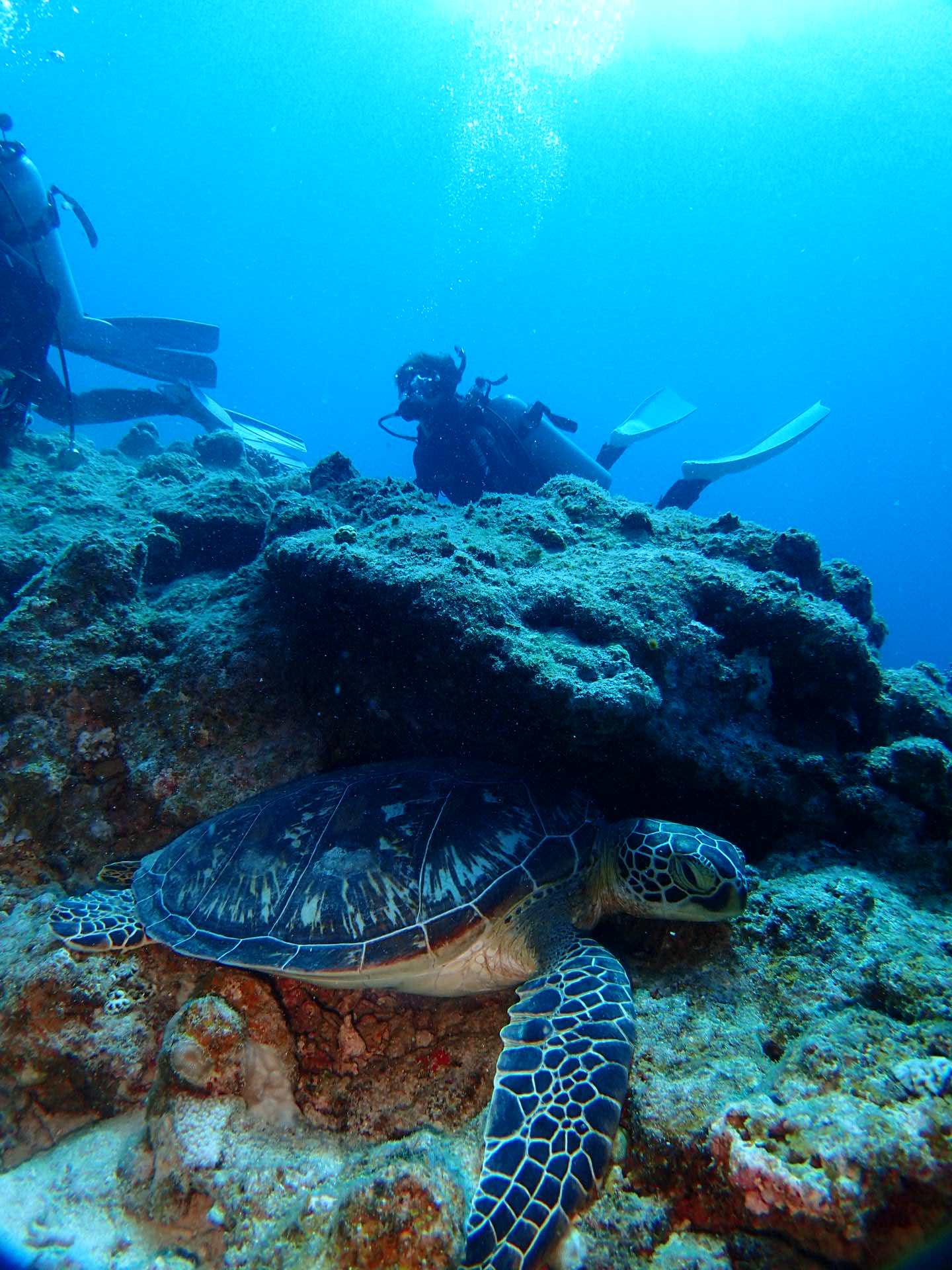 忙しそうなアオウミガメや、グルクンの大群などに遊んでもらいましたよ♨