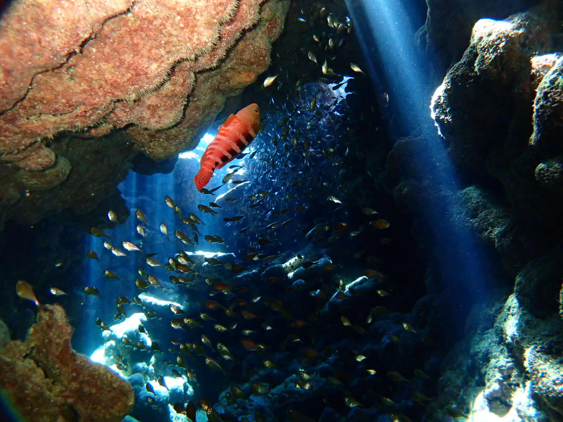迫力満点の地形には、グルクンやカスミチョウチョウウオがワッサワサ♪♪