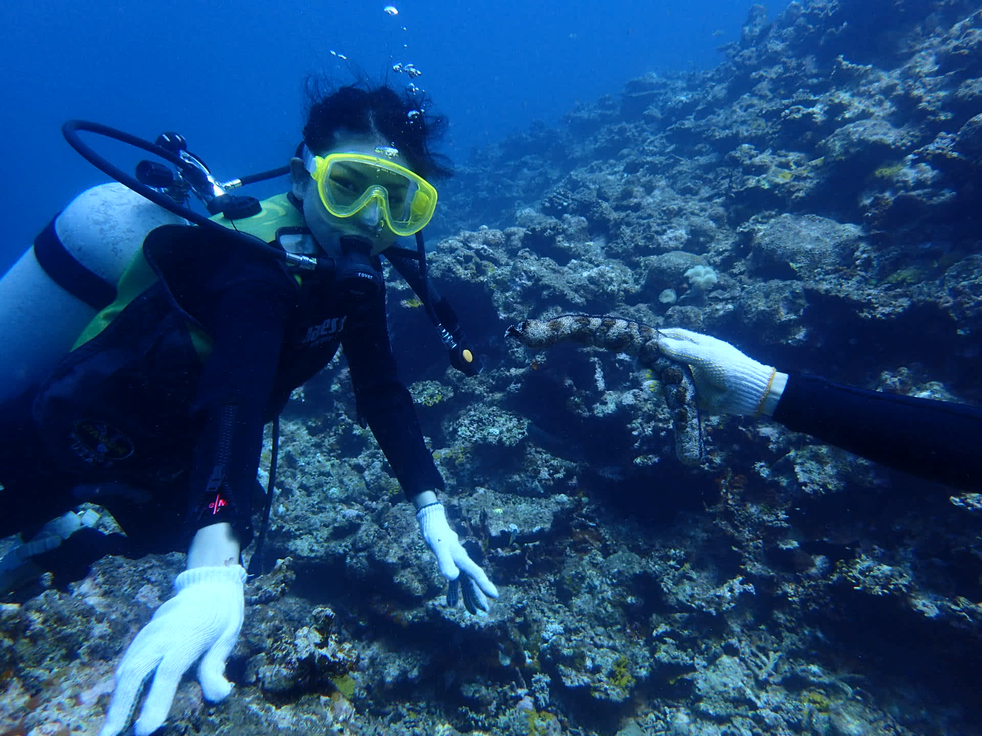 スノーケルもレクチャーもしっかりとこなし~、ダイビングへとGOGOでっす!!