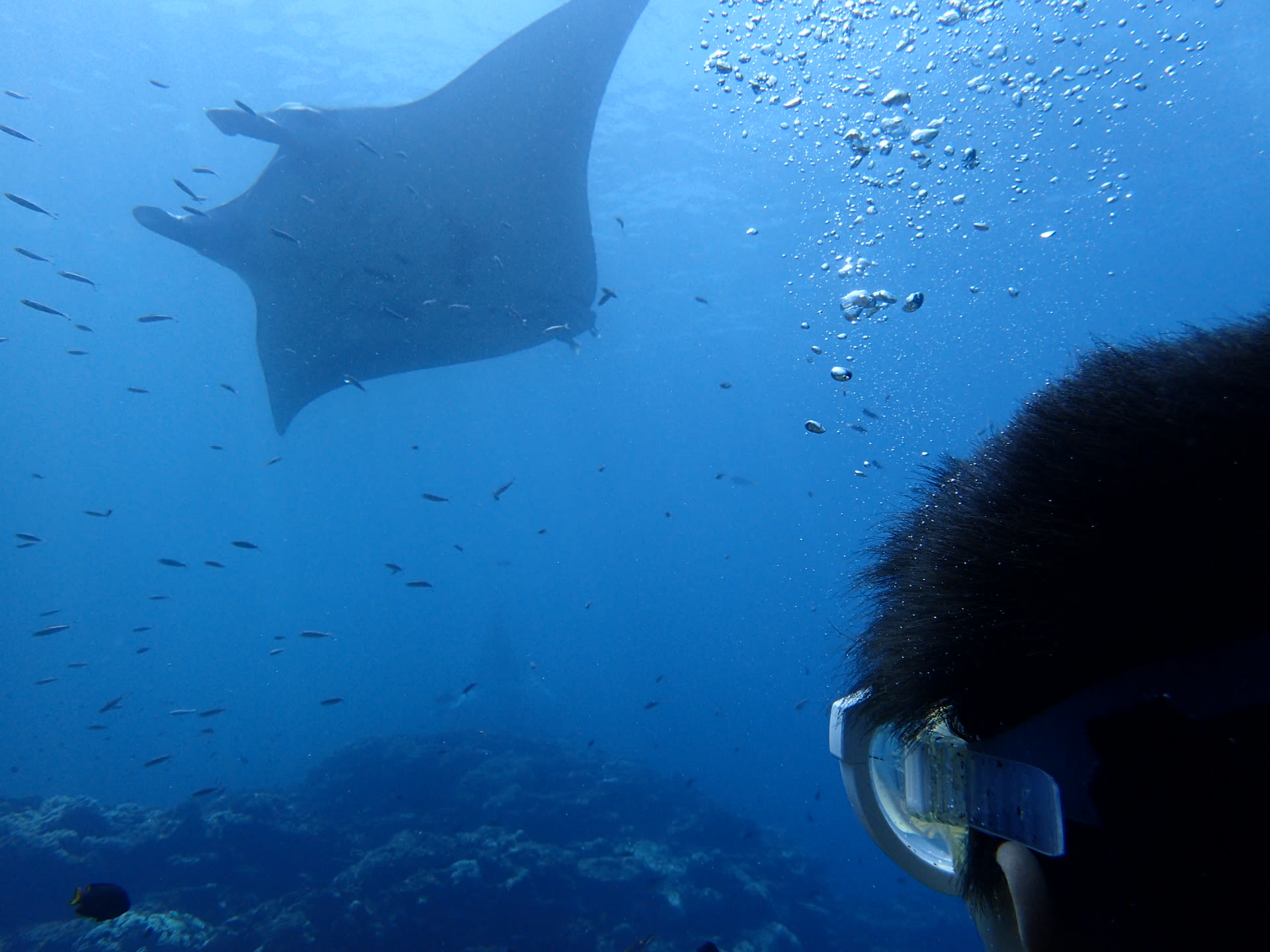 初めて見る、おっきなおっきなマンタに、目玉が飛び出るぐらいびっくりΣ(゜Д゜)