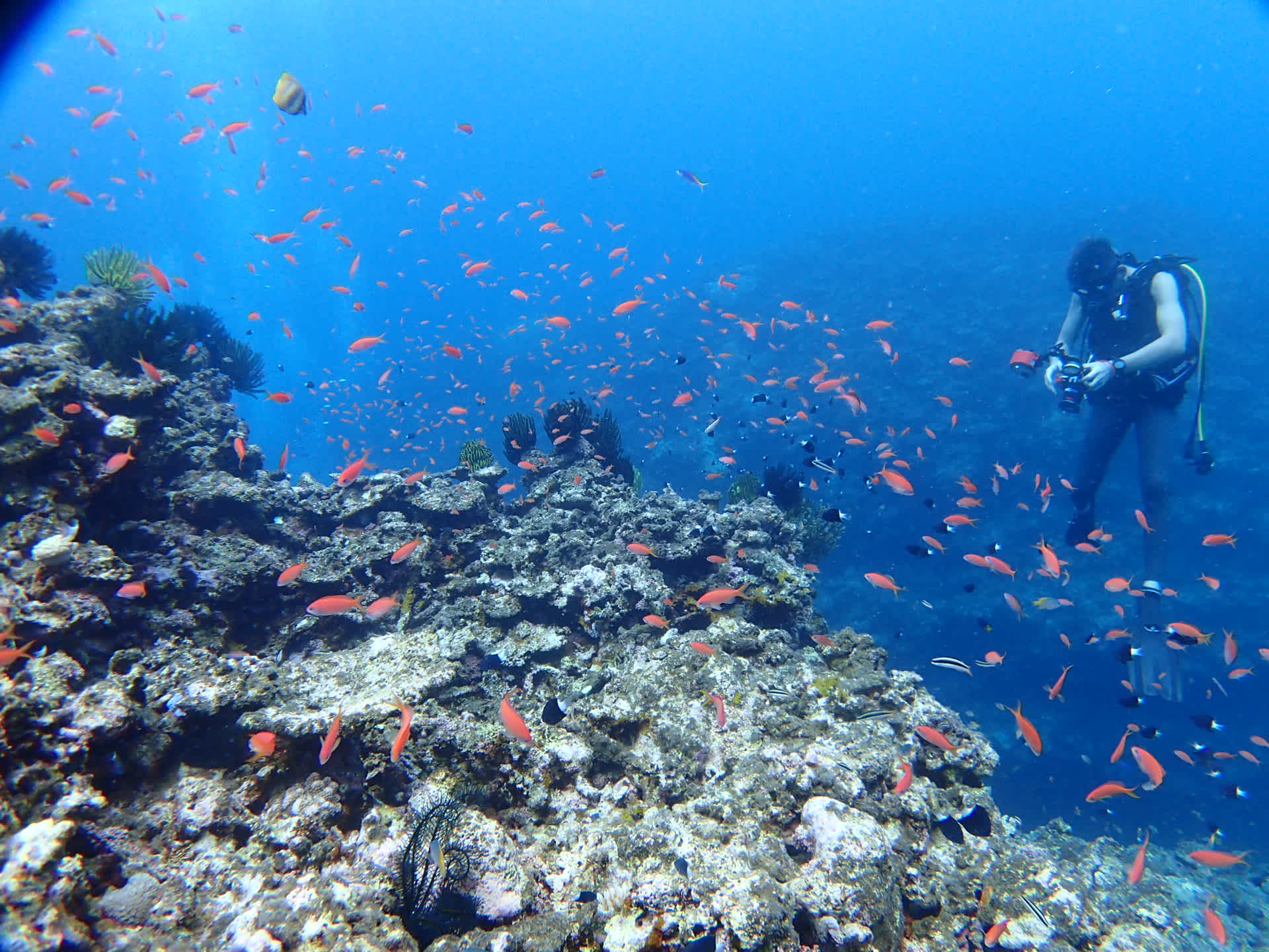 人生初挑戦のダイビングは、華やかなオレンジの群れに包まれちゃいました♪