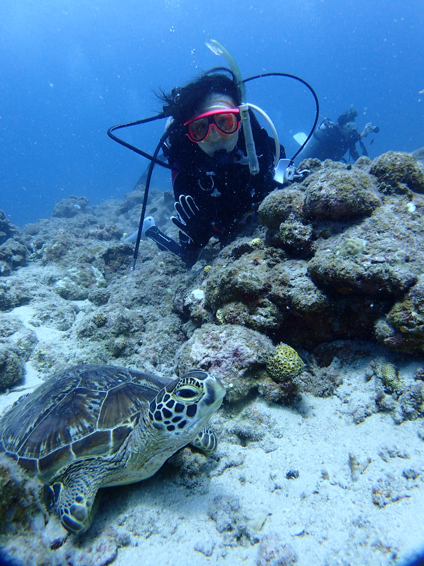 息継ぎしに来たアオウミガメも間近でげっちゅ(^・^)