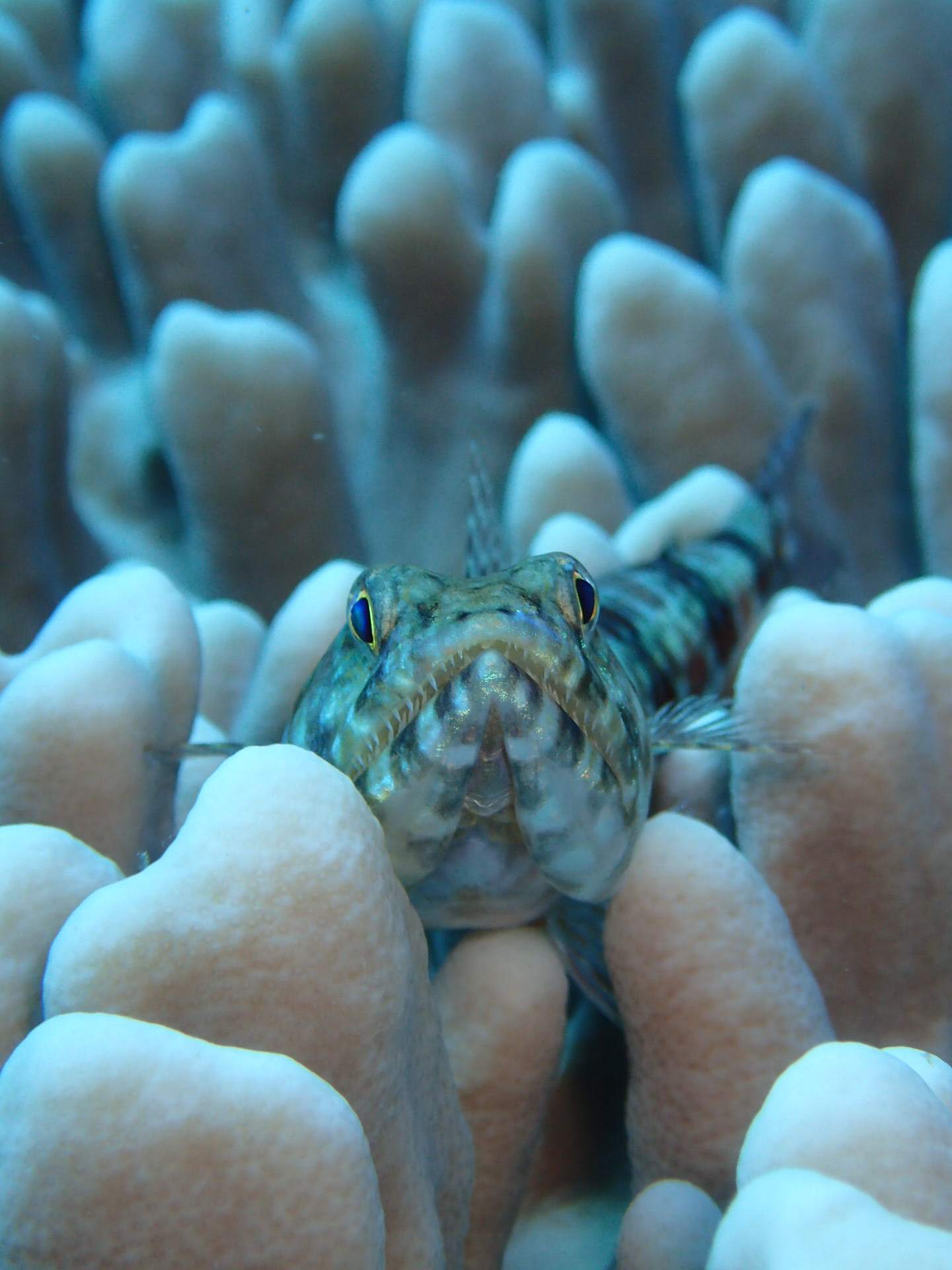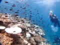 サンゴの白化でキイロサンゴハゼが隠れきれてない!!!!