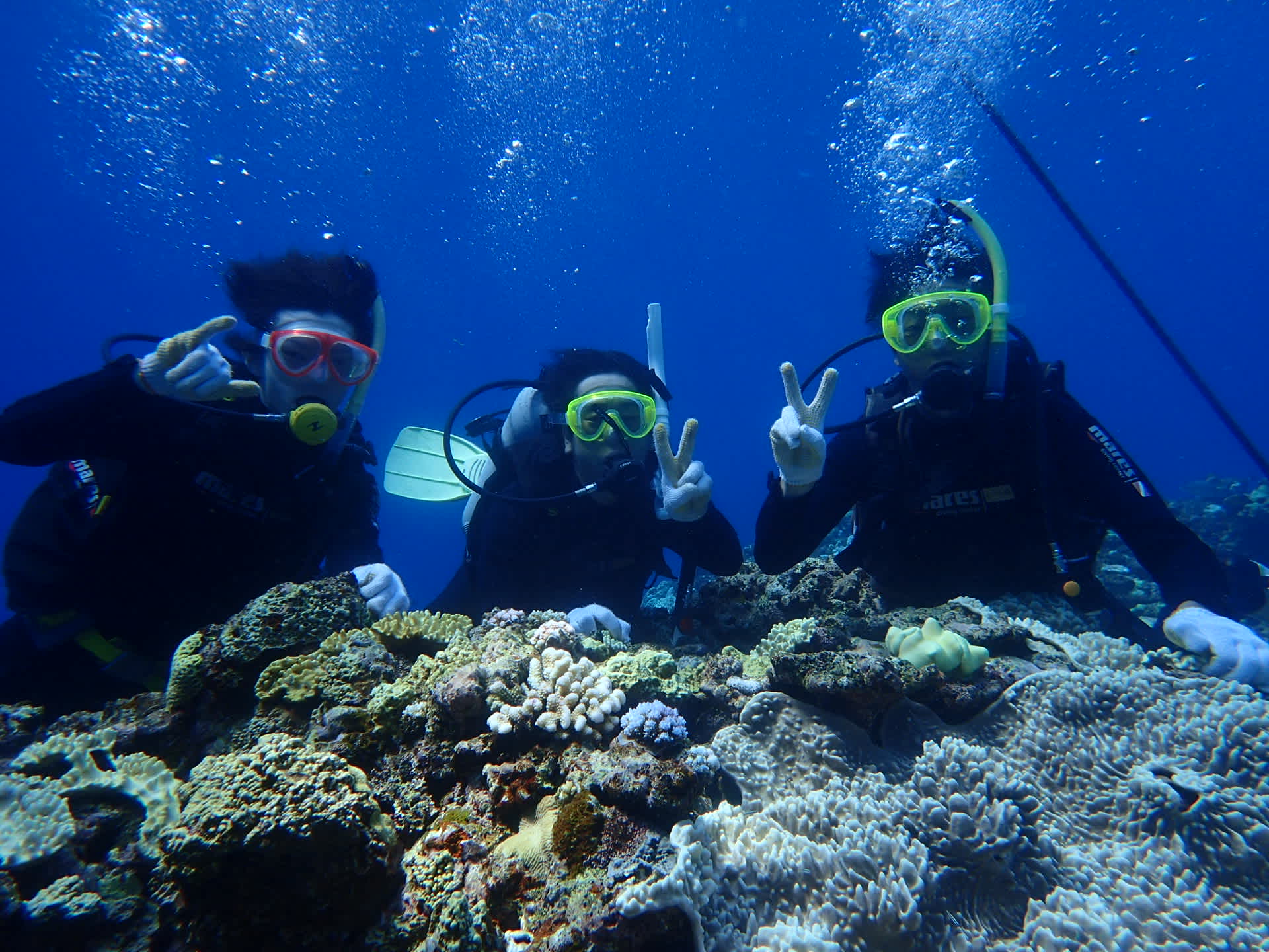 湾奥に入れば風波も弱まり、のんびり浅場のサンゴを楽しめました♨