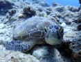 ねぼすけなアオウミガメが並んでぐーすかお昼寝中~~zZZ