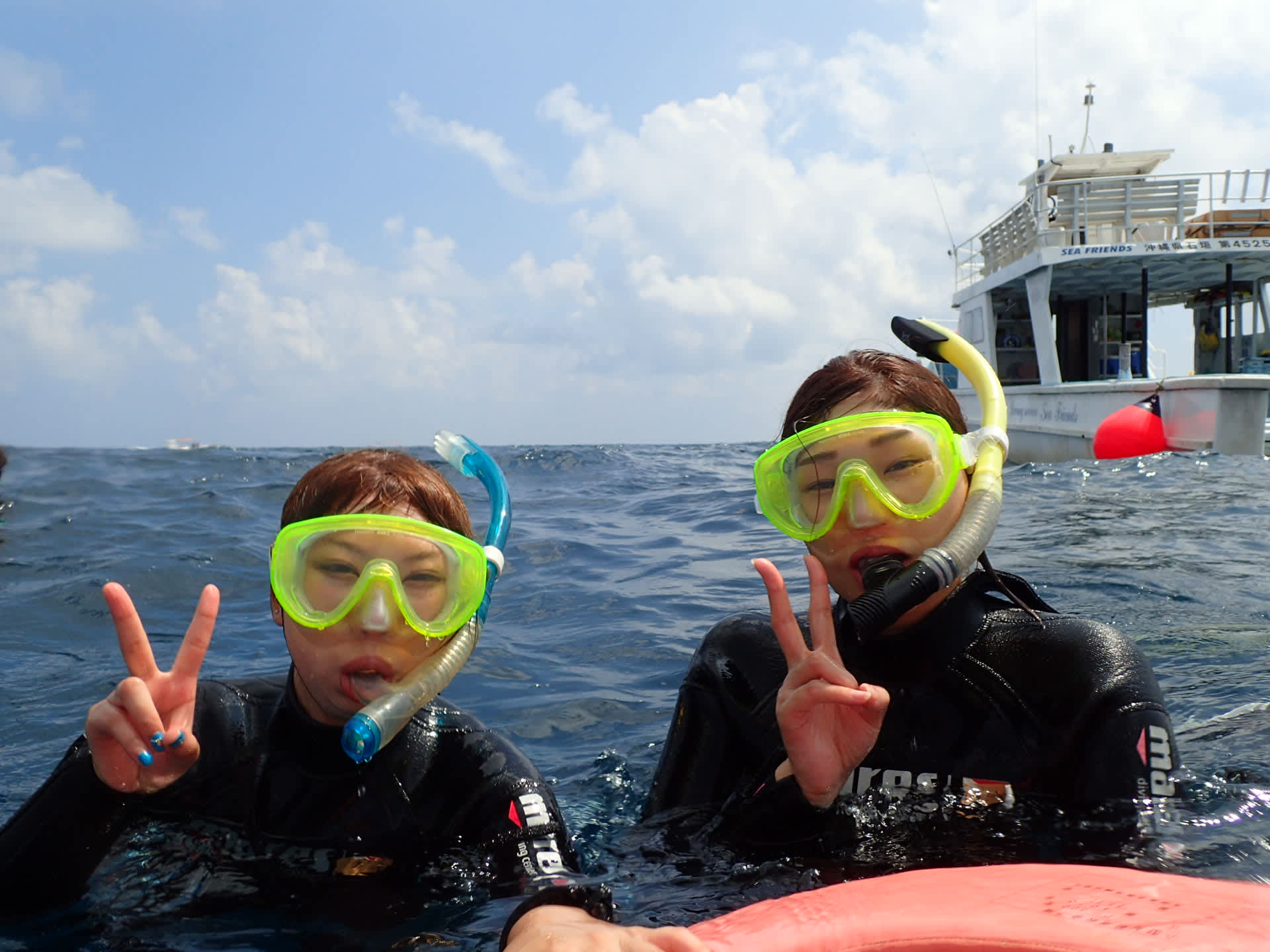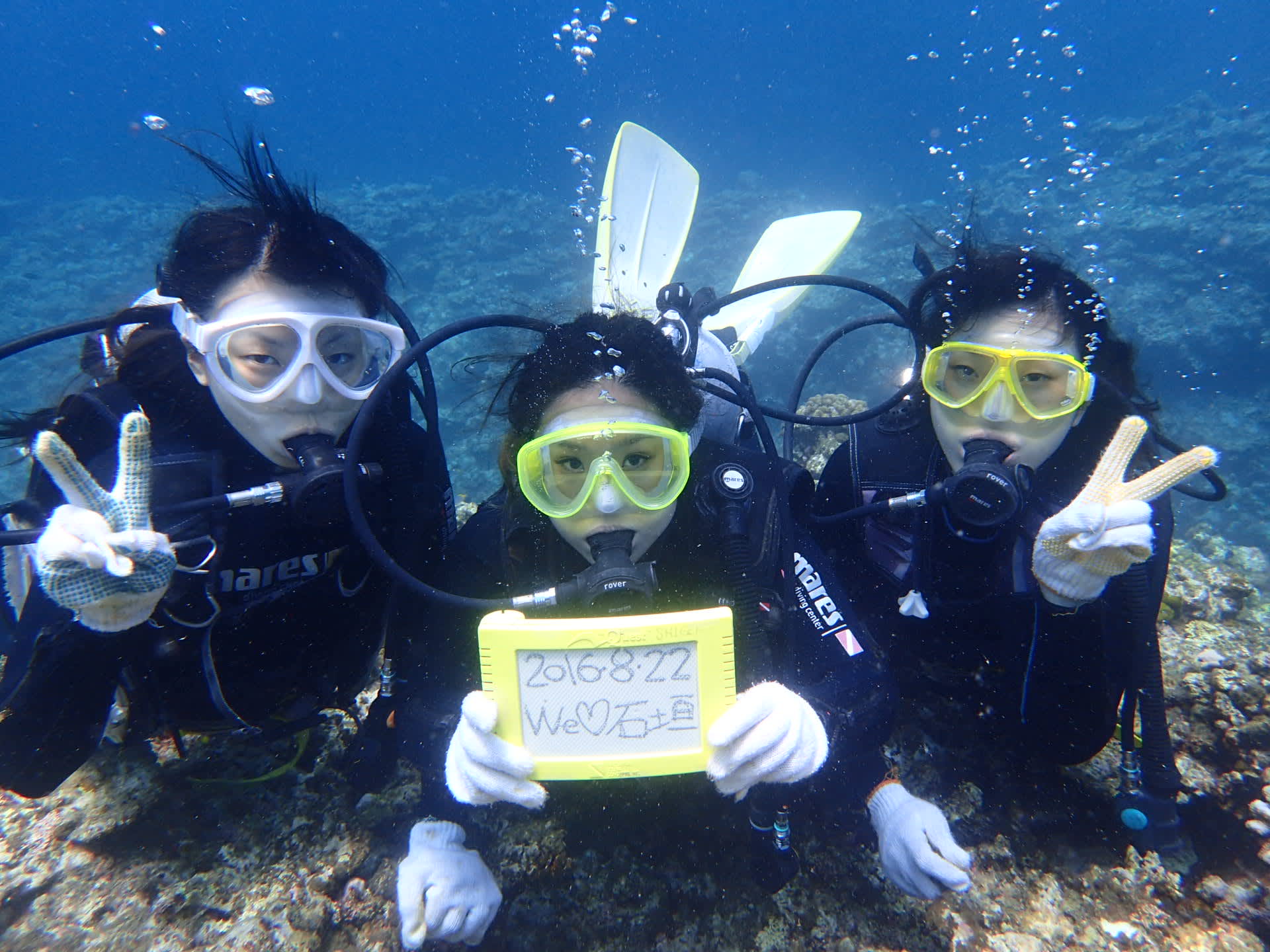 女の子が集まれば、自然とワイワイ笑いに溢れて、1日海を遊び尽くした体験ダイバーチームでしたo(*^▽^*)o