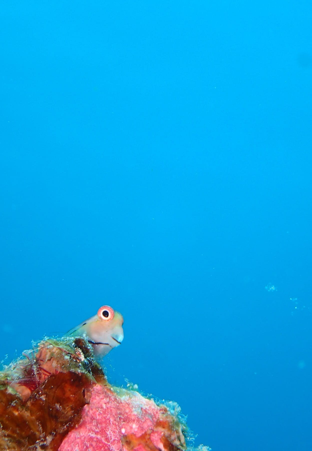 サンゴの白化でキイロサンゴハゼが隠れきれてない!!!!