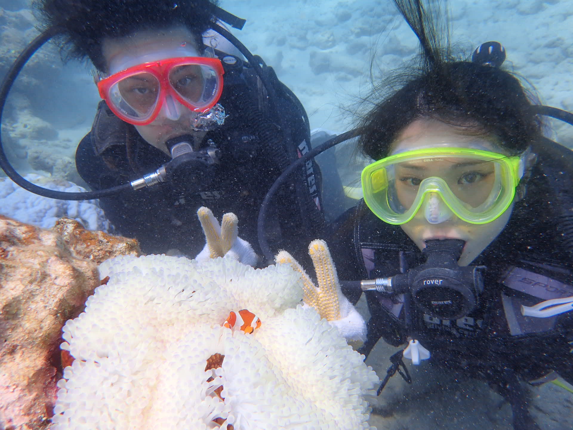 父娘コンビも、クマノミさんと仲良し記念撮影ができて、夏の想い出になったかな!?