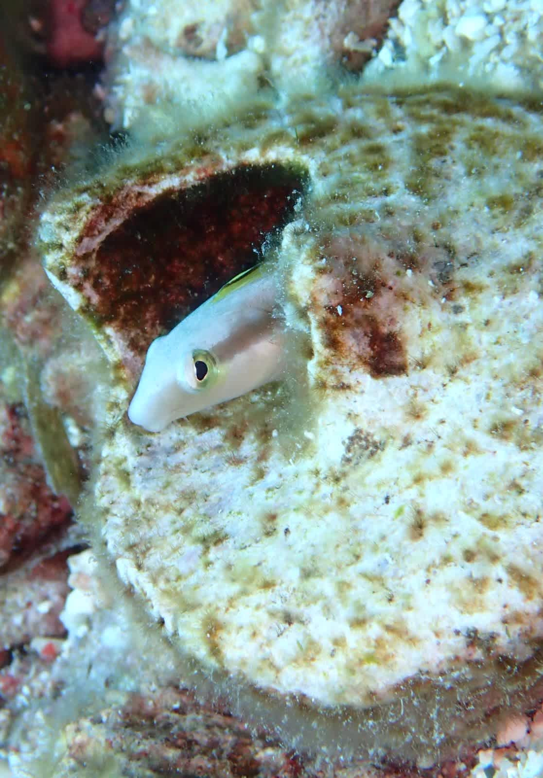 オオハマサンゴの下には、かわいいスミレヤッコの若魚が5,6匹群れ群れして遊んでましたよ