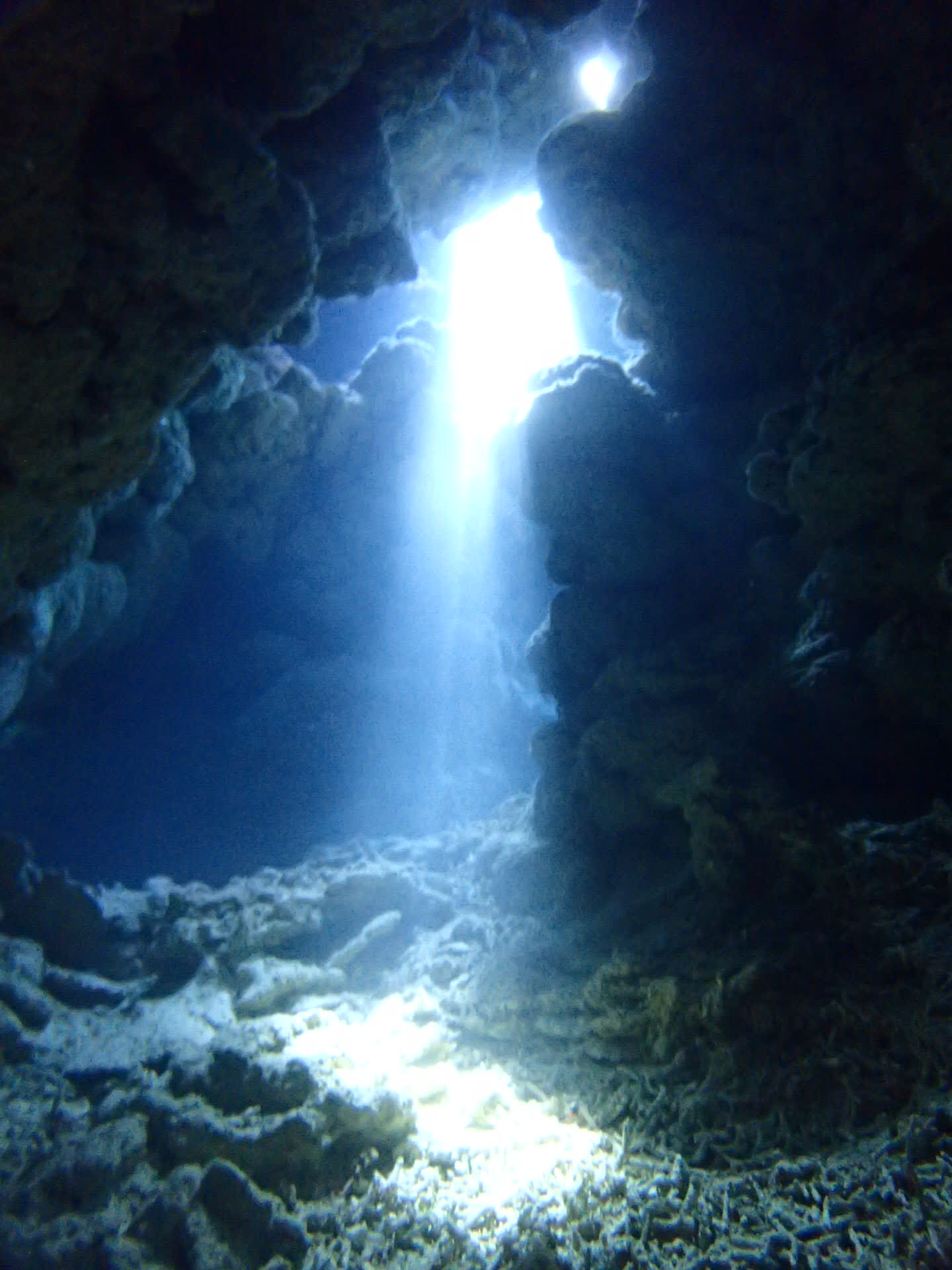 ぽっかり空いた洞窟にはキラキラの光と、数を増やしているハタンポがユラユラ〜♪♪