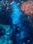 凶暴なハマクマノミさんや、揺らめくやわらかさんごに包まれながら