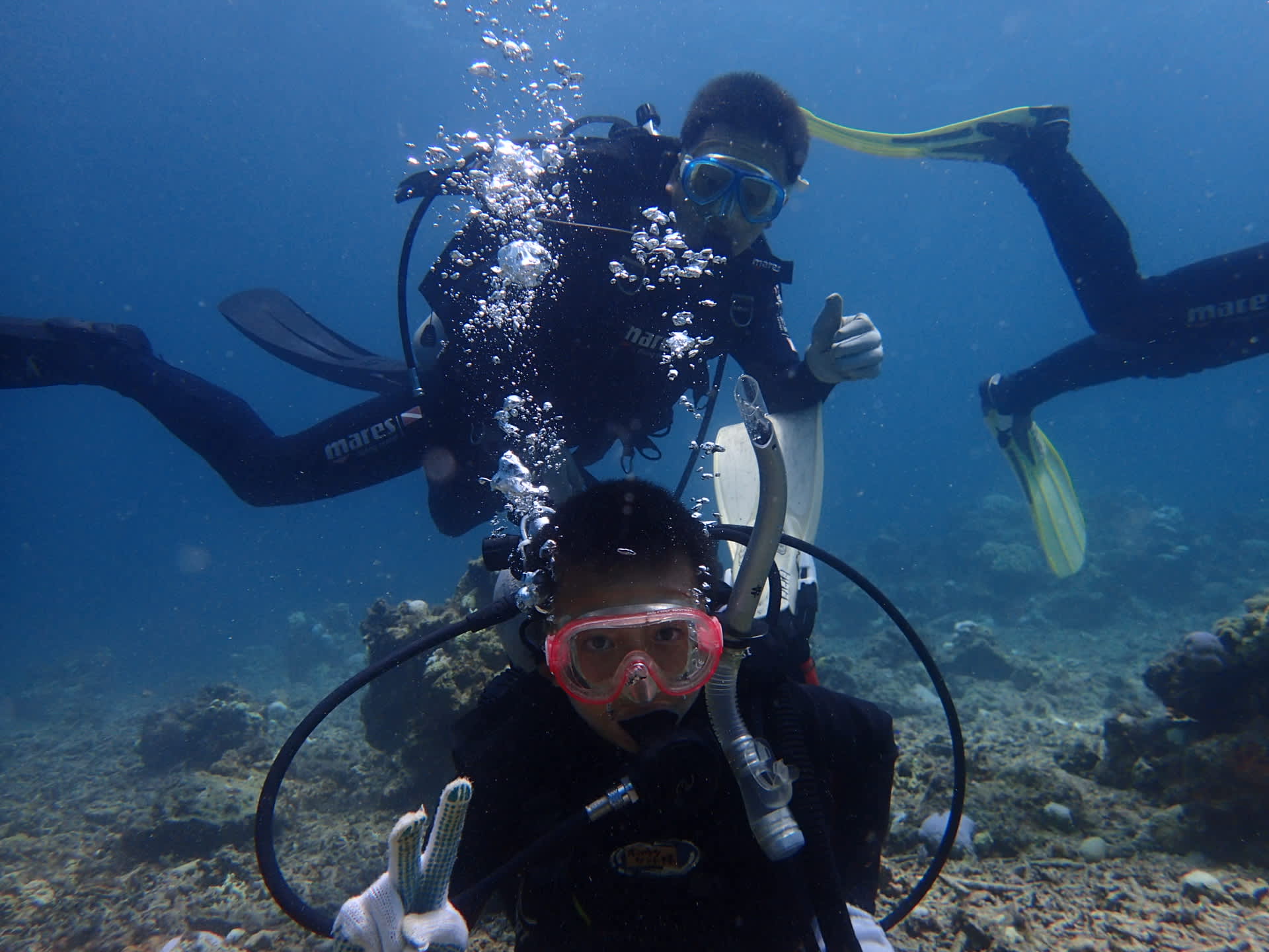 レギレータくわえてぶくぶく初ダイブやったりと大はしゃぎの1日でした~~(V)o¥o(V)